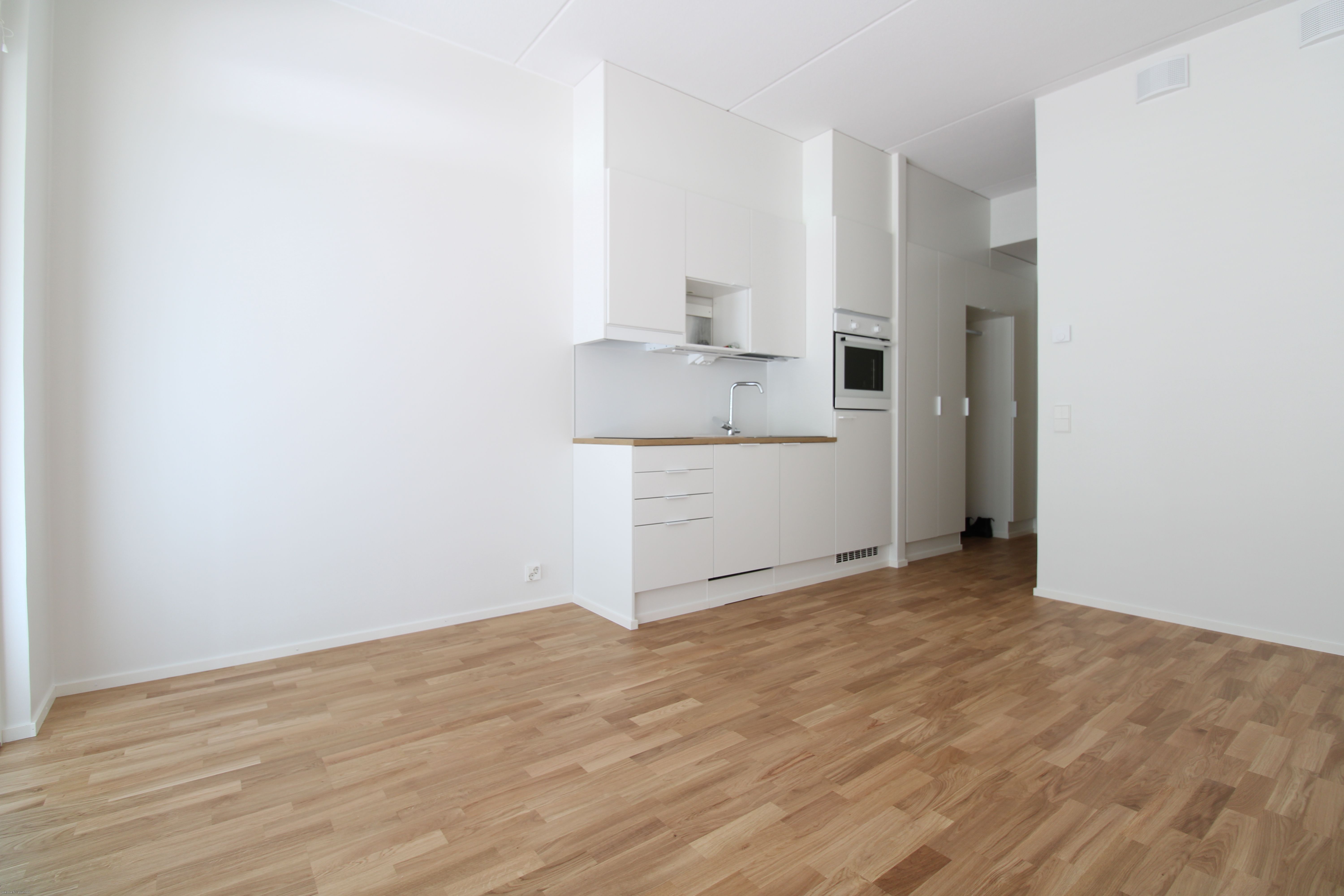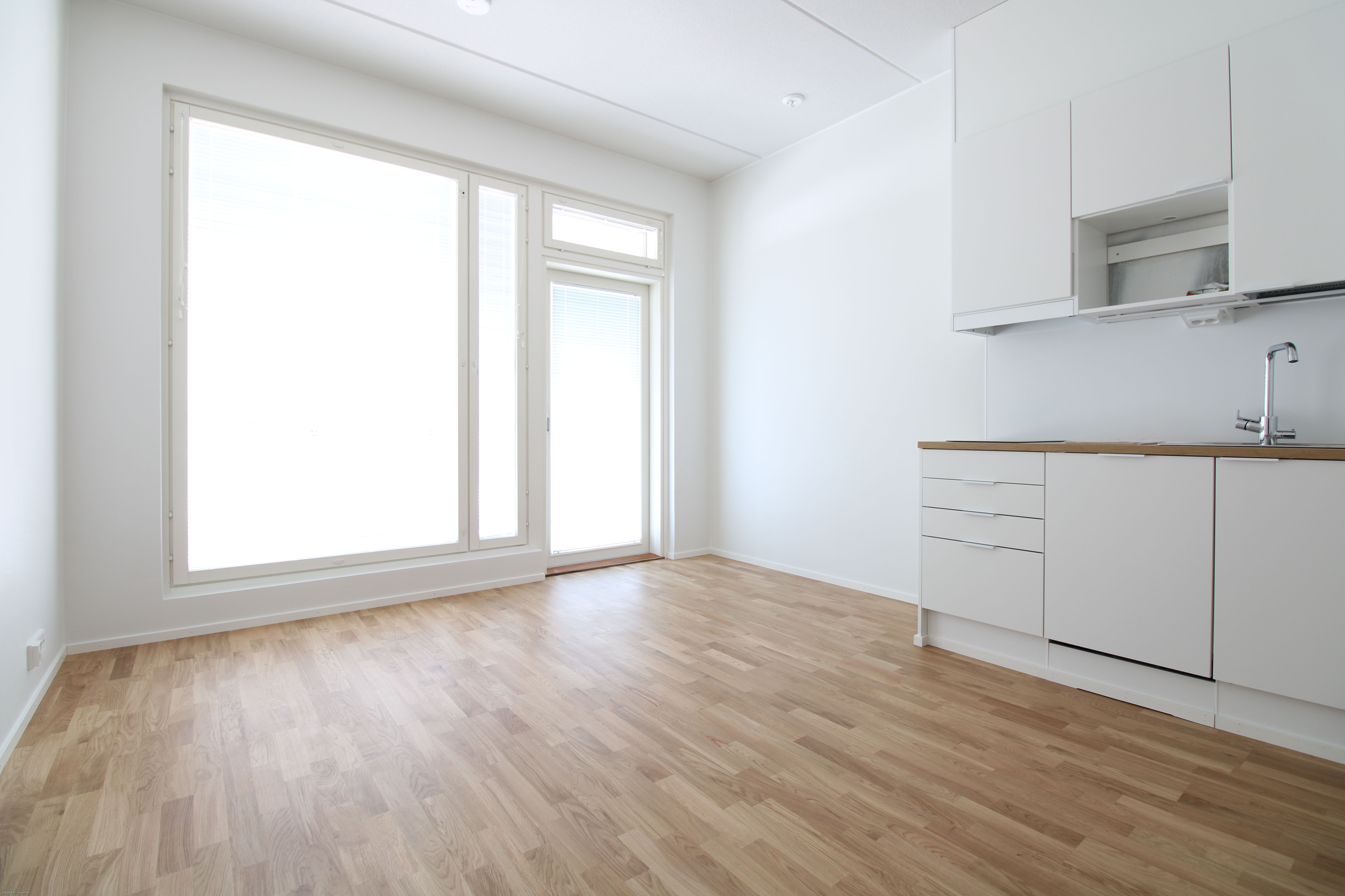 Tämä ylimmän kerroksen asunto ihastuttaa jo ensinäkemällä ainutlaatuisella avaruudellaan. Tavanomaista korkeampi huonekorkeus ja lattiasta kattoon ulottuvat ikkunat luovat kotiin valoisuutta. Vesikiertoinen lattialämmitys tarjoaa mahdollisuuden rajattomille sisustusratkaisuille. Keittiön varustukseen kuuluu kahden levyn keraaminen liesitaso, erillisuuni, astianpesukone sekä jääkaappi pakastelokerolla. Kylpyhuoneessa on paikka ja liitännät pyykinpesukoneelle ja kuivausrummulle.