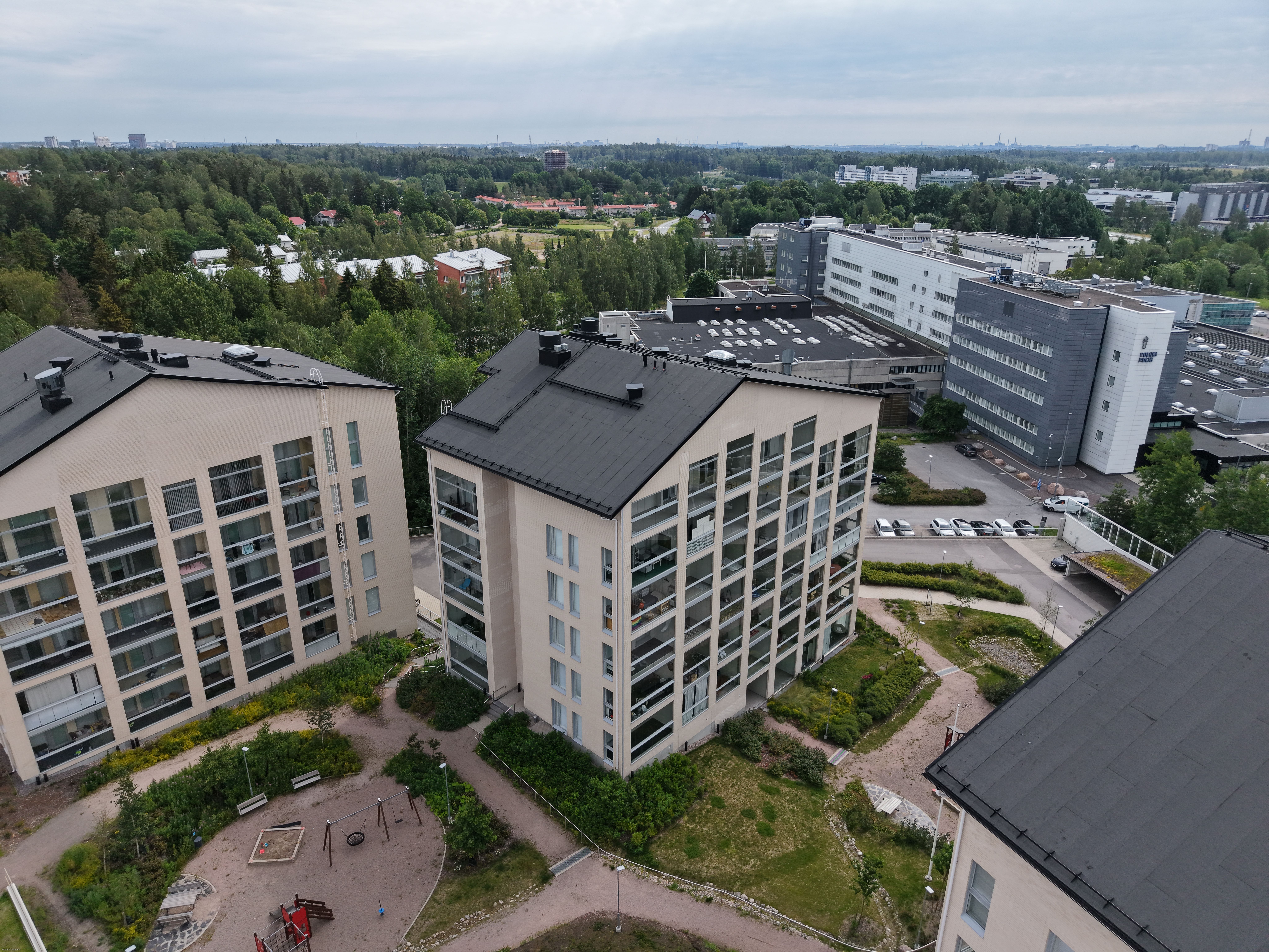 Alueelta on loistavat kulkuyhteydet joka suuntaan. Autolla ajat Helsingin keskustaan 20 minuutissa. Lähin juna-asema sijaitsee reilun kilometrin päässä ja sieltä pääset lähijunalla pääkaupunkiin noin vartissa. Bussipysäkki löytyy myös asunnon vierestä ja yhteydet Raide-Jokerille ovat toimivat.