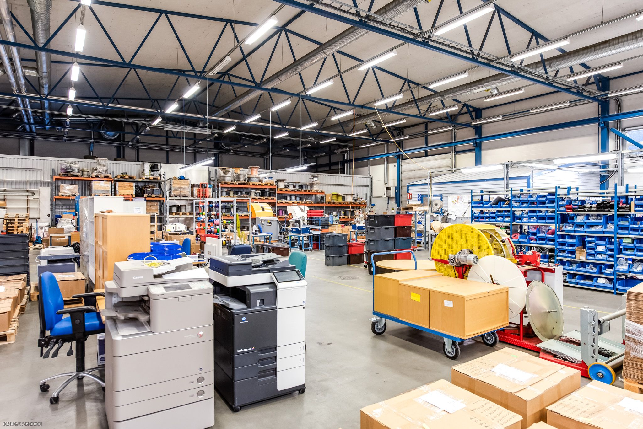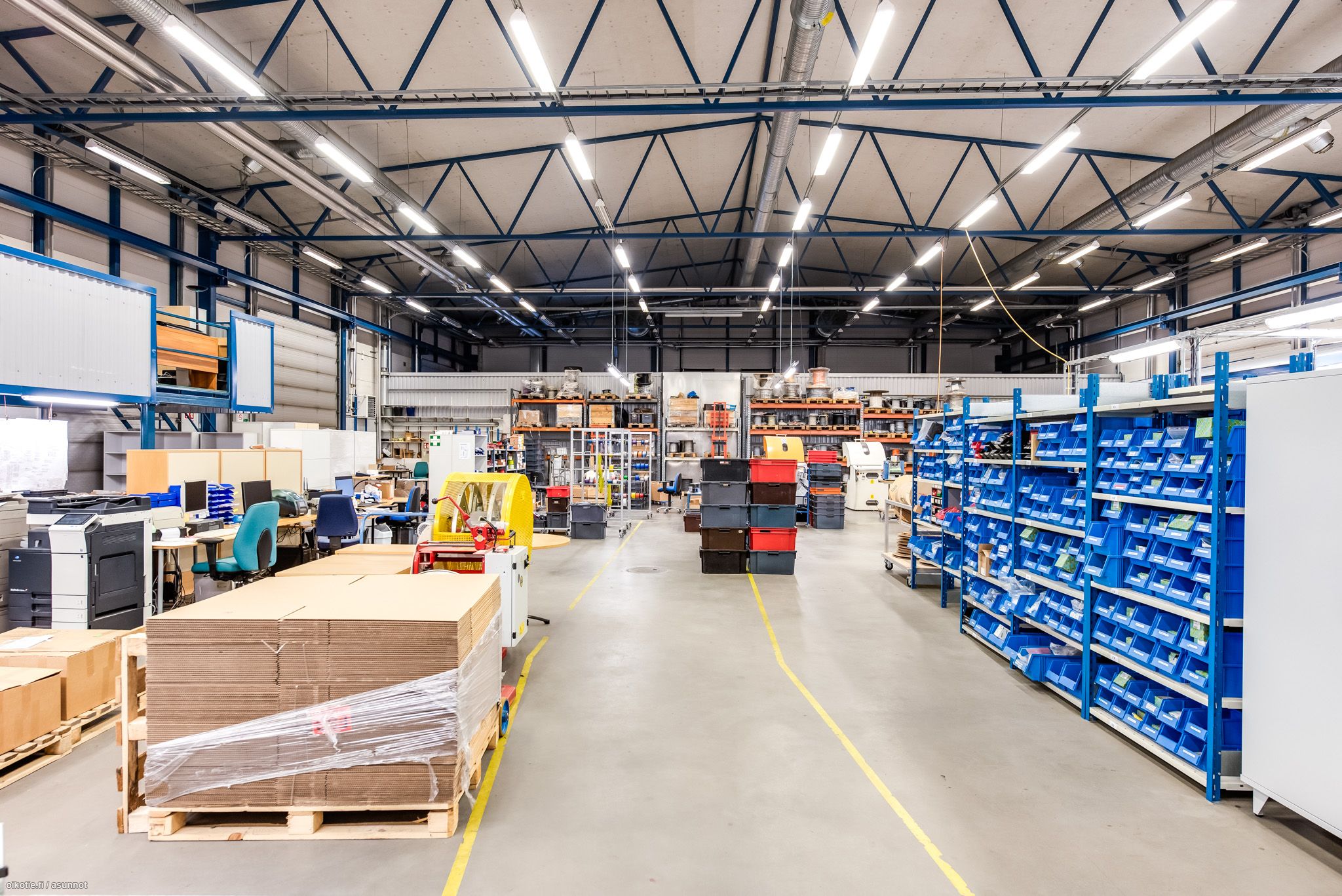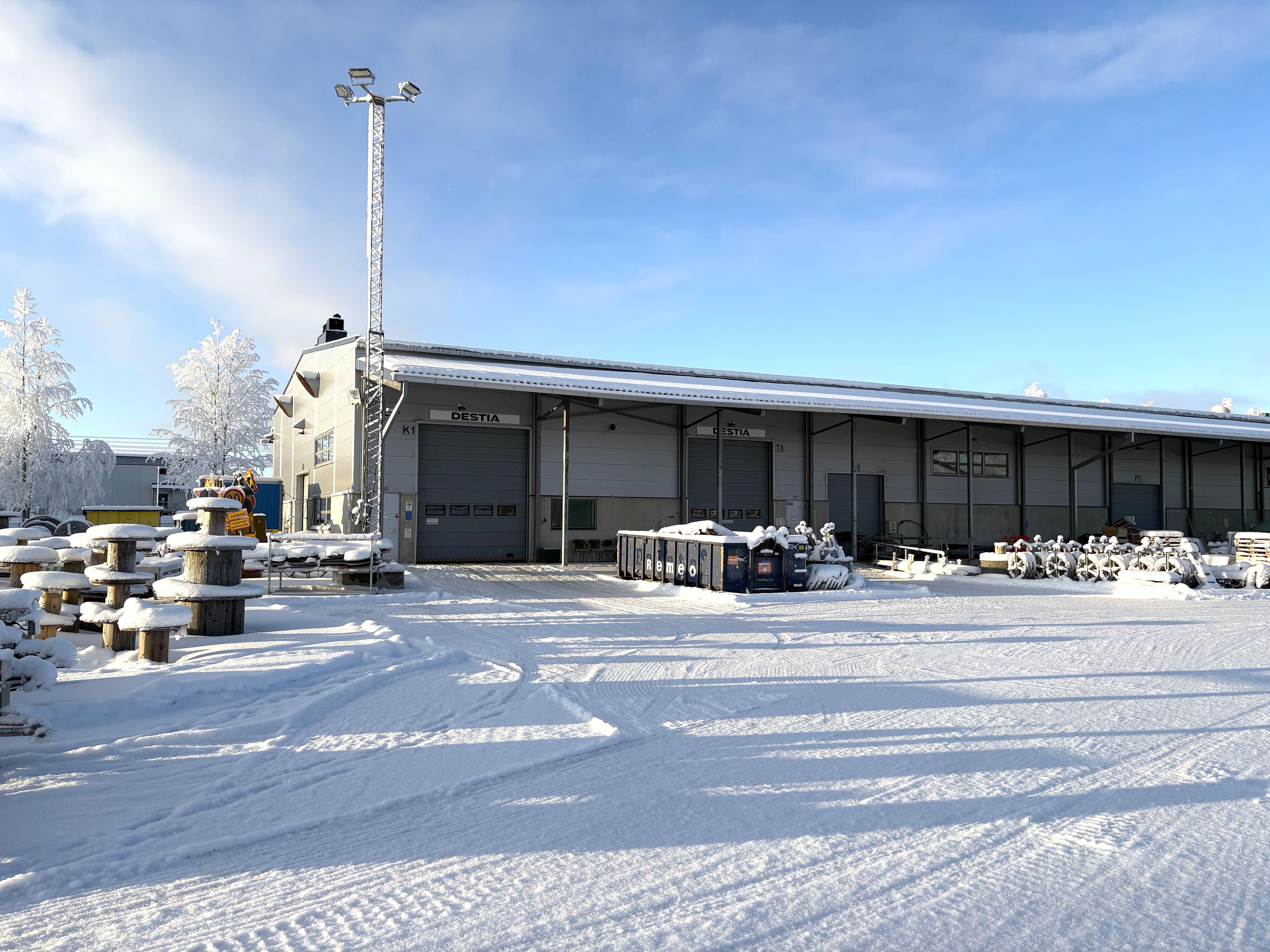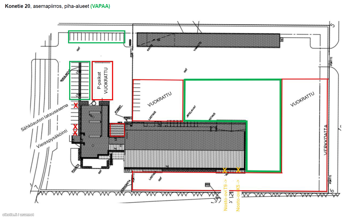 Kohteesta vuokrataan 865m2 tuotantotilaa, joka jakautuu 650m2 tilaan ja 215m2 korjaamohalliin. Lisäksi on mahdollisuus vuokrata toimistotilaa 167m2. Tuotantotilaan on isot nosto-ovet ja läpiajomahdollisuus. Valaistus on hyvä ja tiloissa on useampi lattiakaivo (myös linjakaivo). Isolla, aidatulla tontilla on pihatilaa reilusti käytettävissä, joten pihallekin mahtuu tavaraa ja logistiikka toimii.