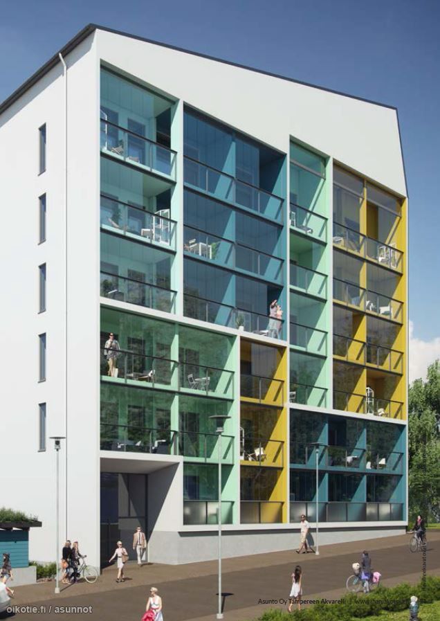 Akvarellin asunnot ovat hyväpohjaisia pienasuntoja. Kaikissa niissä on parveke. Rakennus on kuusikerroksinen, ja siinä on hissi. Lämpimät varastot ovat kellarikerroksessa, missä myös saunaosasto sijaitsee.