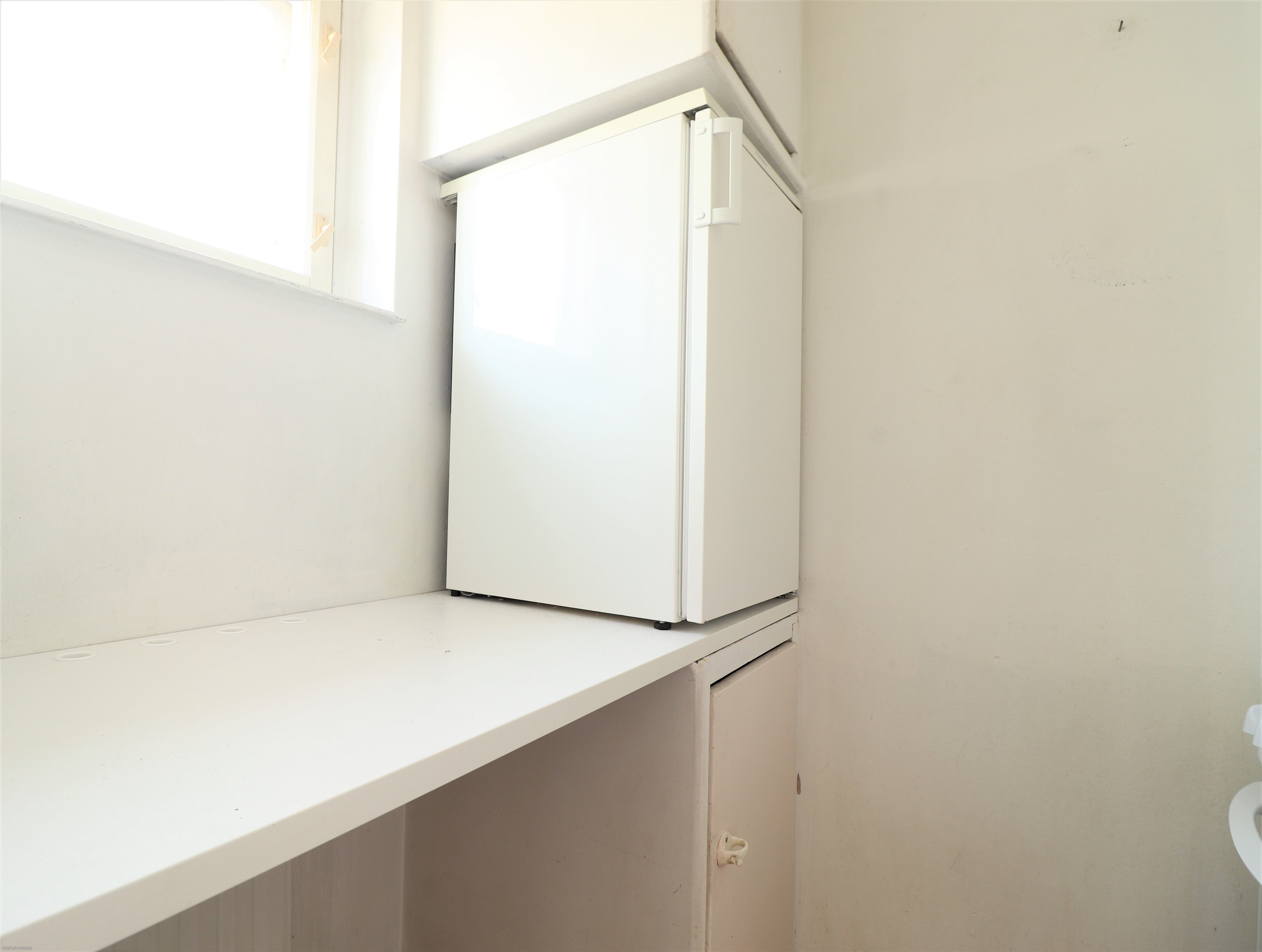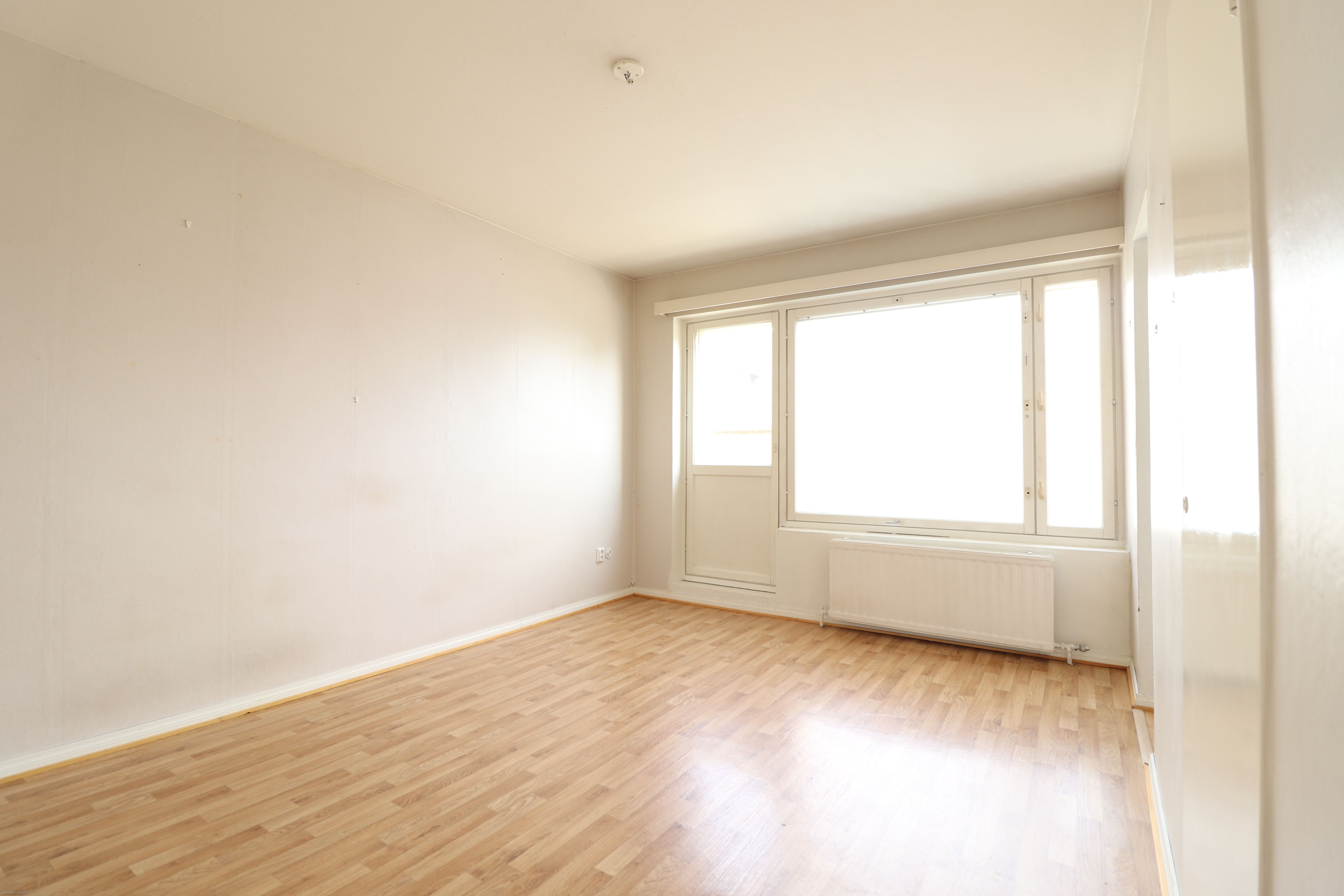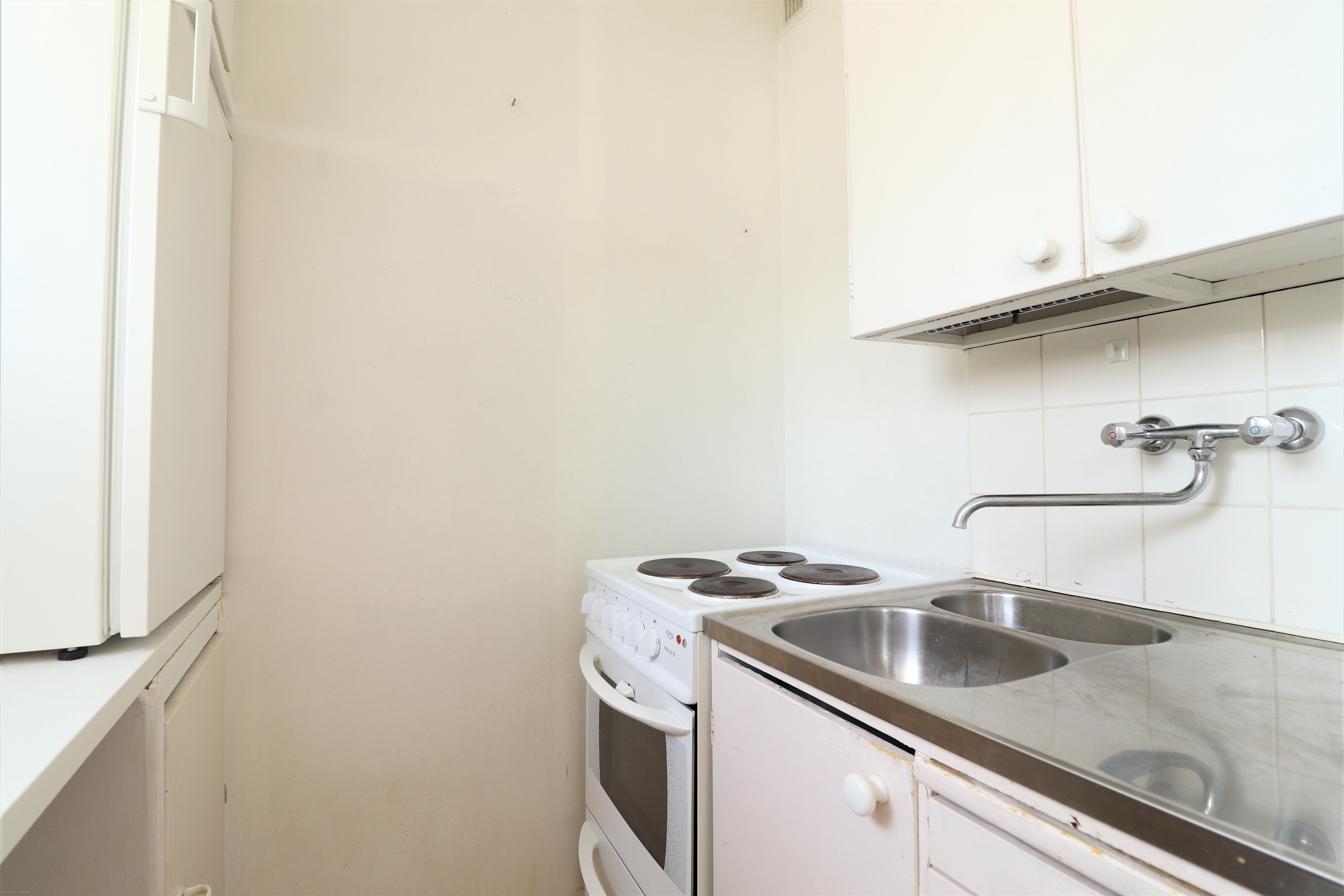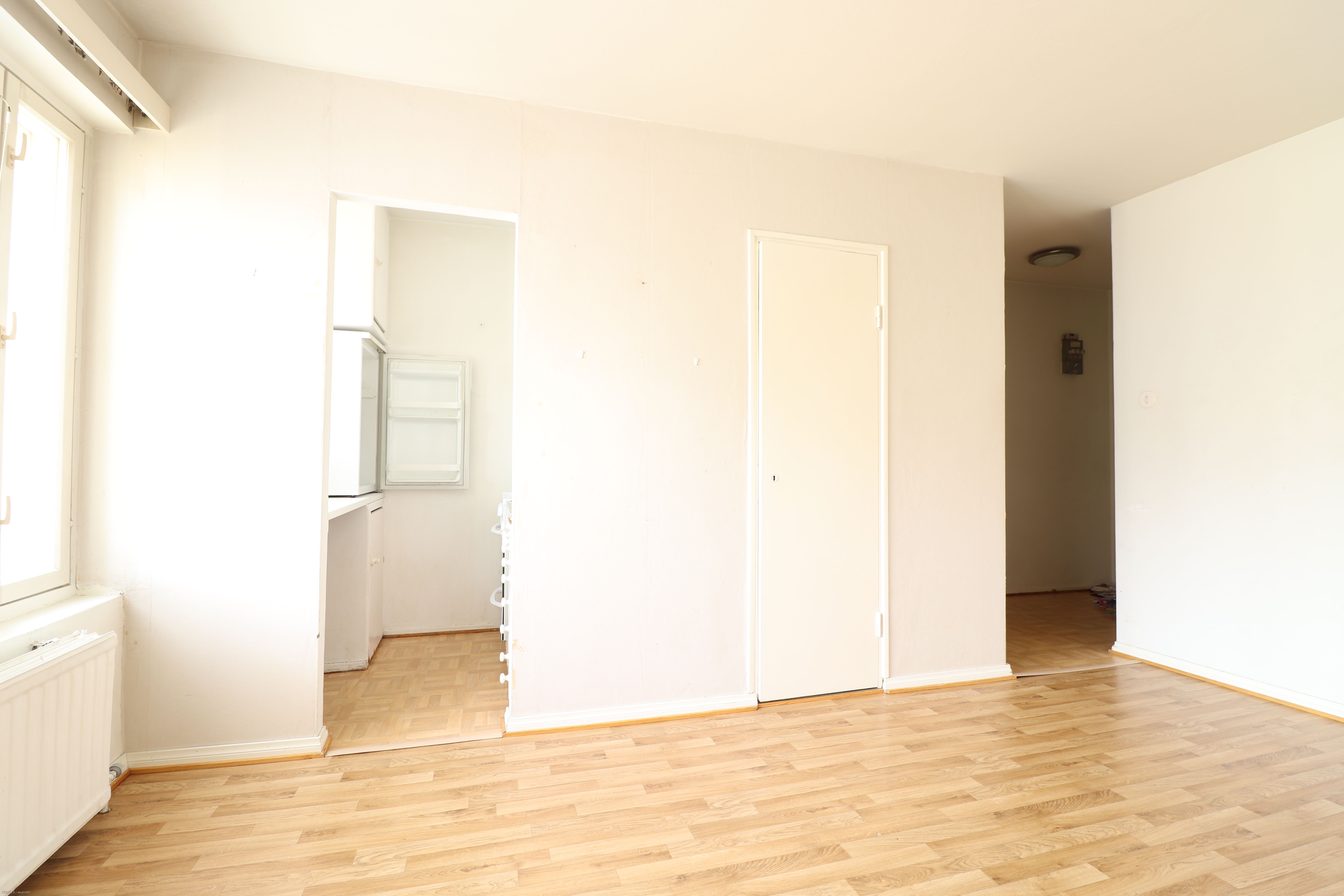 Vuokrattavana Heinäpäässä näppärän kokoinen ylimmän (3/3) kerroksen, hissittömän talon peruskuntoinen yksiö ranskalaisella parvekkeella.