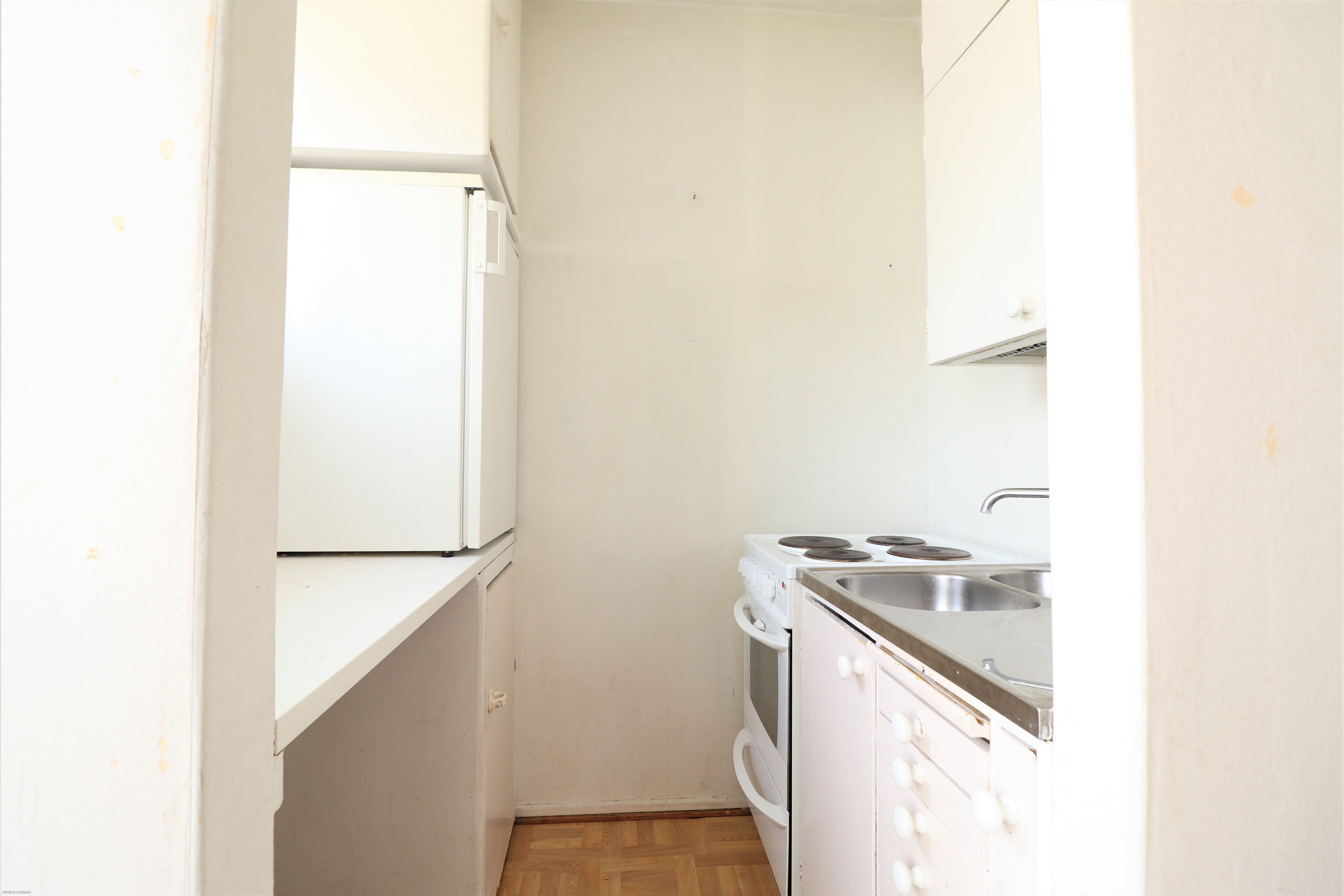Sijainti on mainio: lyhyt matka keskustaan ja kauppa lähes vieressä. Rauhallinen, puistomainen ympäristö ja lähellä useita urheilumahdollisuuksia. Muovimattolattiat, seinät maalatut / tapettiseinää, vaaleansävyinen minikeittiö. Kylpyhuoneeseen mahtuu päältä täytettävä taikka edestä täytettävä pienemmän kokoinen pyykinpesukone.