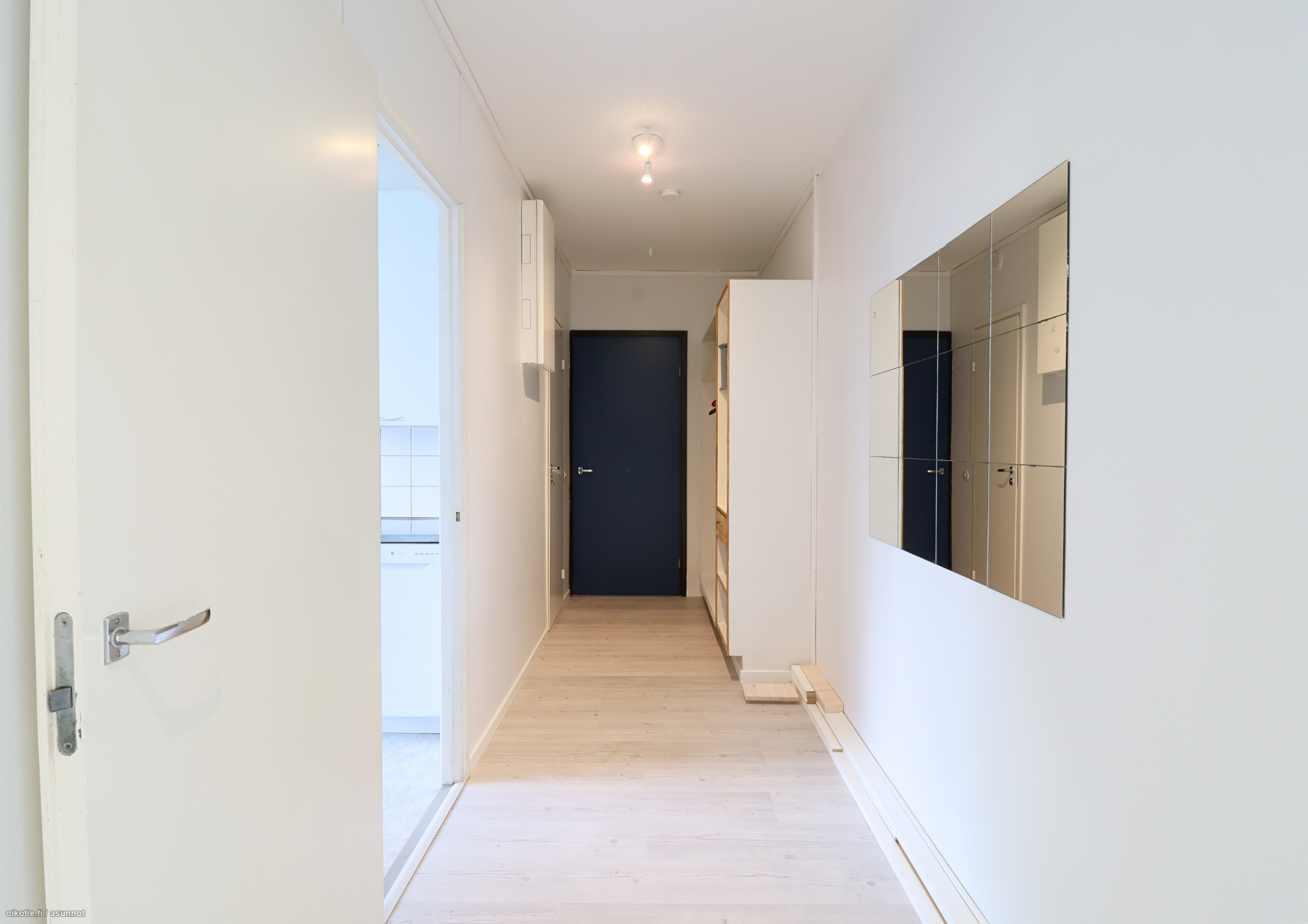 Hiljattain remontoidun asunnon pinnat ovat erinomaisessa kunnossa. Seinät ovat maalipinnoin ja lattiassa on laminaatti. Erillisestä tilavasta keittiöstä löytyy mukavasti tasoa työskentelyyn. Keittiön varusteluun kuuluu jääkaappi-pakastin, uuni, liesi ja astianpesukone. Avarasta olohuoneesta on käynti parvekkeelle. Makuuhuone on tilava ja sieltä löytyy erillinen vaatehuone. Putkiremontin yhteydessä remontoidussa kylpyhuoneessa on paikka ja liitännät pyykinpesukoneelle.