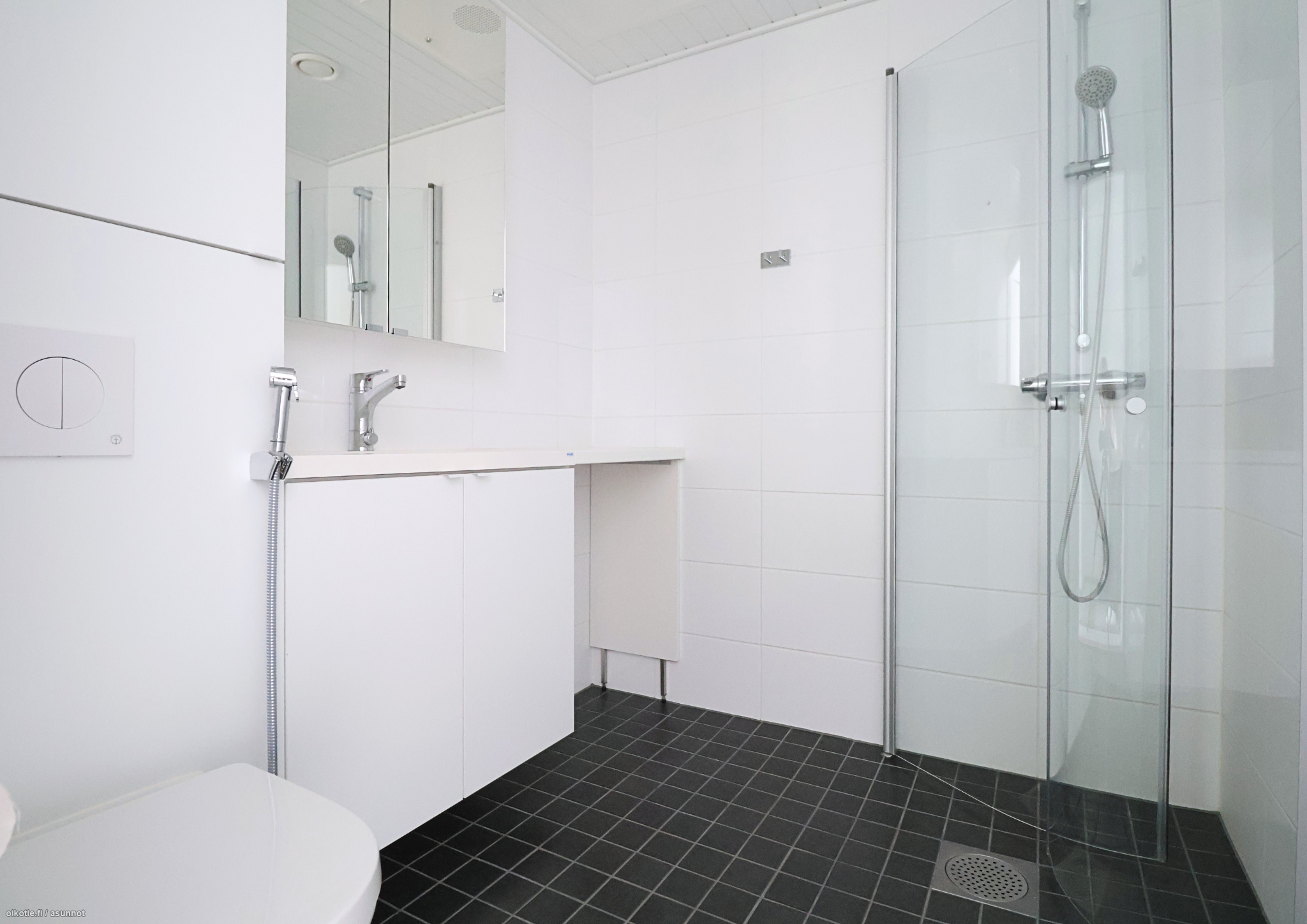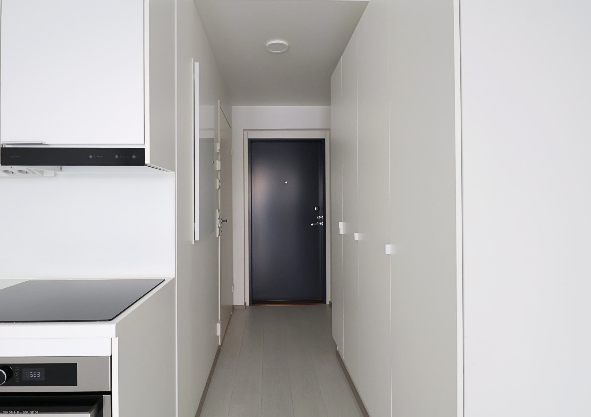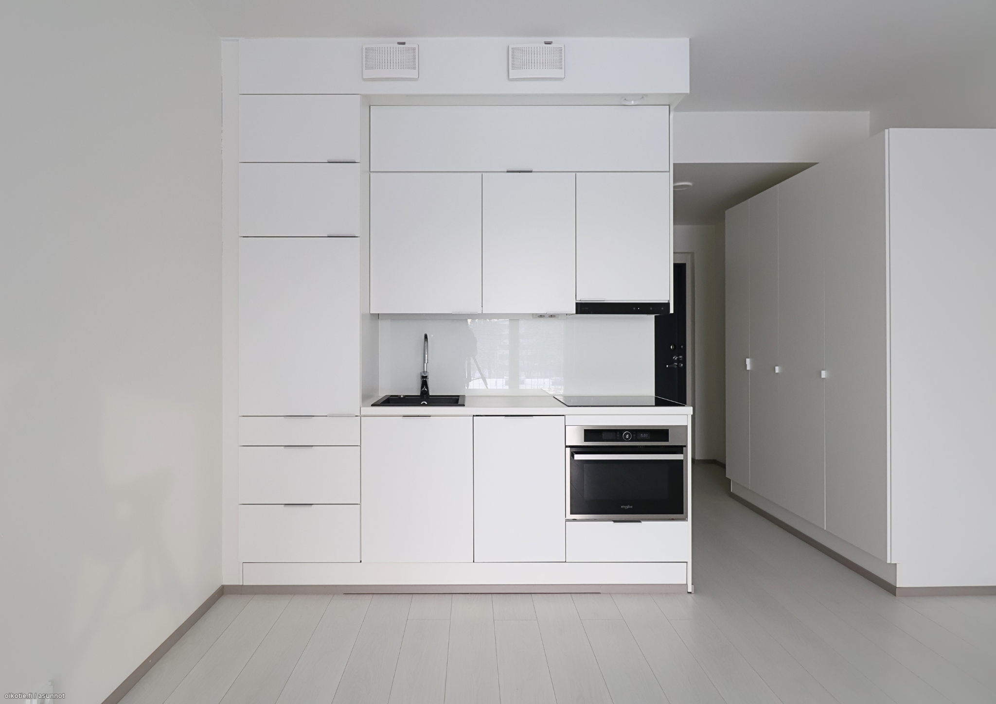 Asunnossa on toimiva ja kompakti pohjaratkaisu. Modernista keittiöstä löytyvät integroituna astianpesukone, jääkaappi ja pakastin sekä uuni ja liesi. Kylpyhuoneessa on paikka ja liitäntämahdollisuus pyykinpesukoneelle. Eteisestä löytyy mukavasti kaappitilaa.