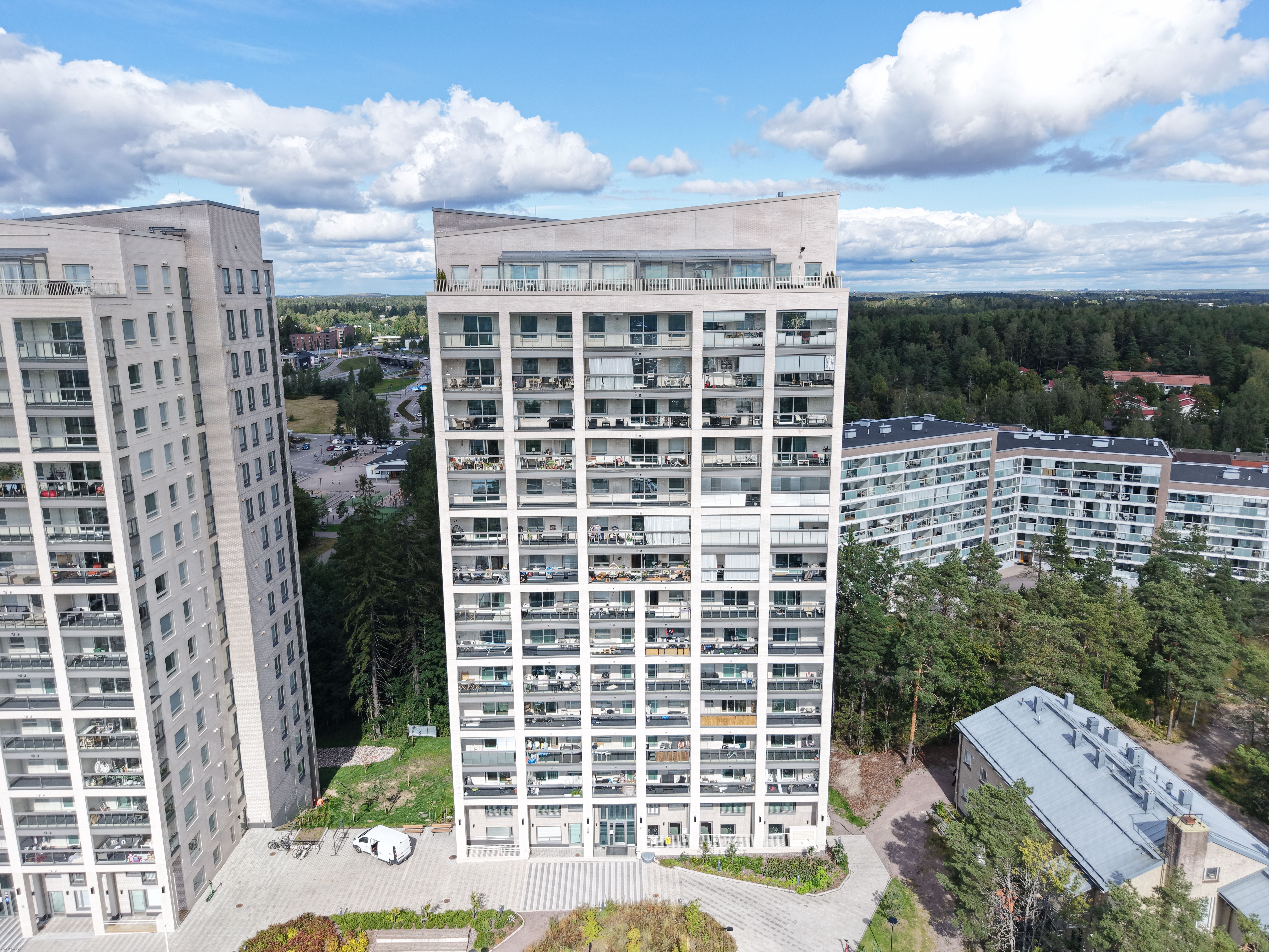 Taloyhtiö sijaitsee vain kivenheiton päässä Leppävaaran palveluista ja liikenneyhteyksistä, mutta kuitenkin omassa rauhassaan vehreiden mäntyjen keskellä. Kauppakeskus Sello ja Leppävaaran juna-asema sijaitsevat vain noin kilometrin kävelymatkan päässä.