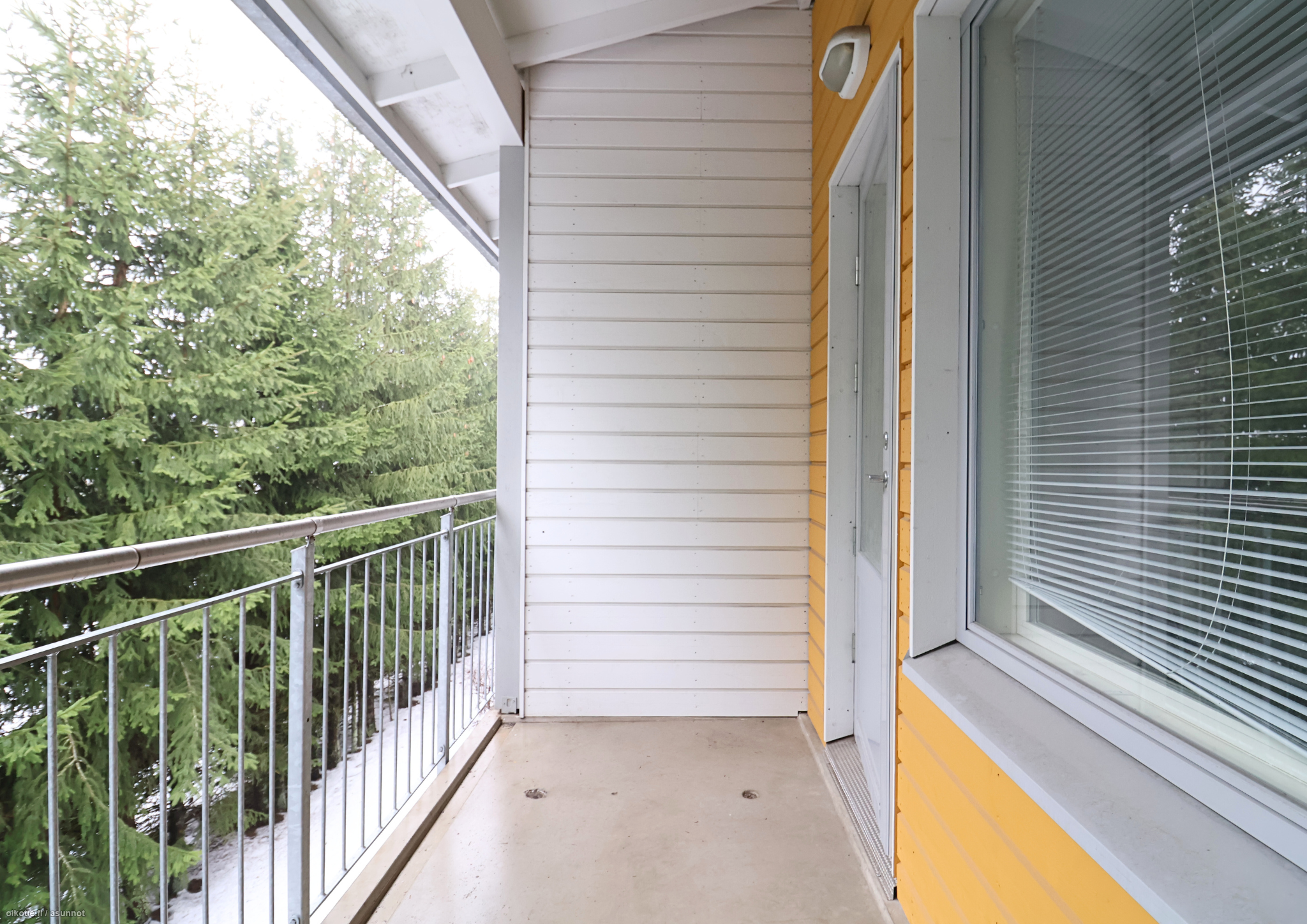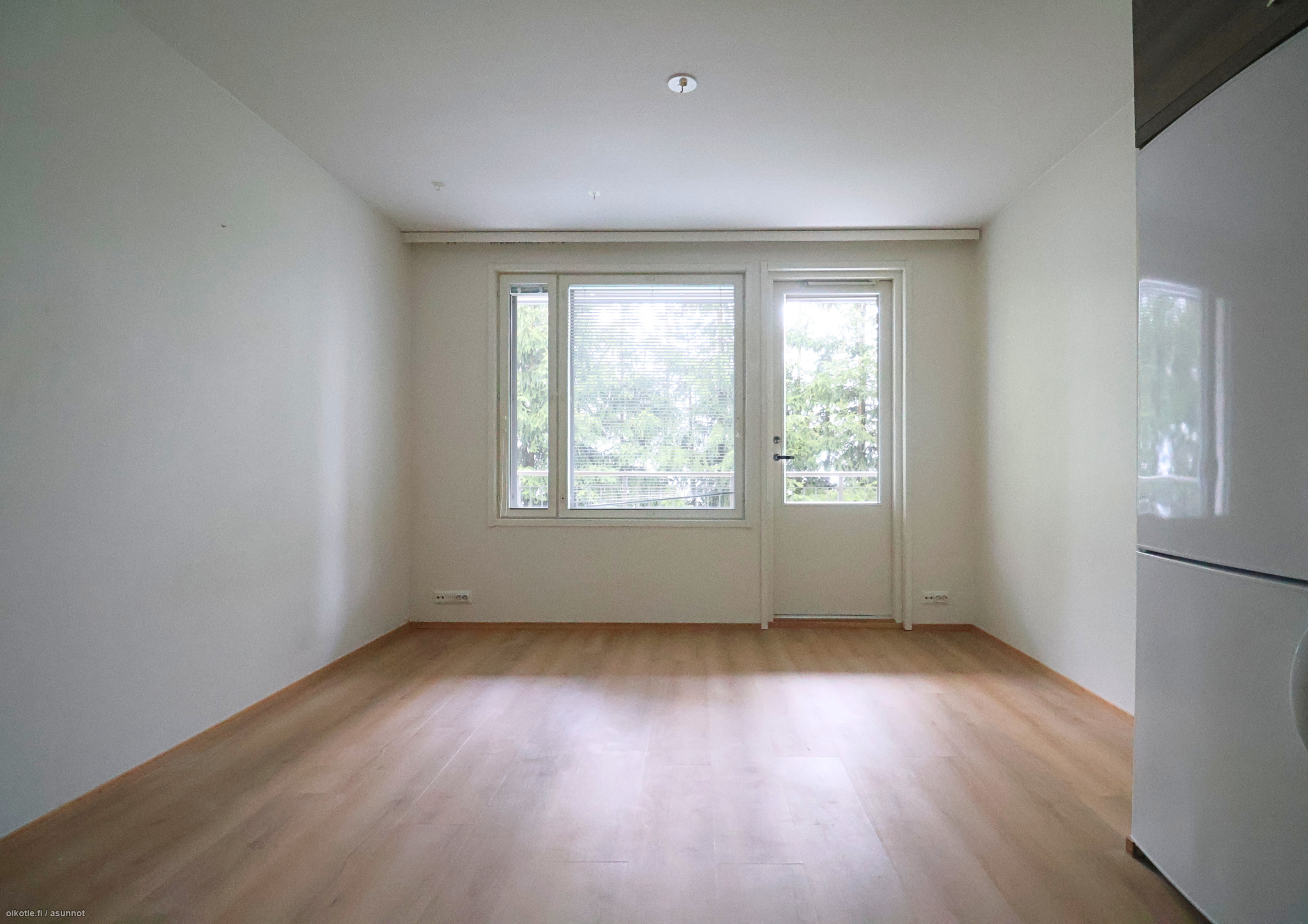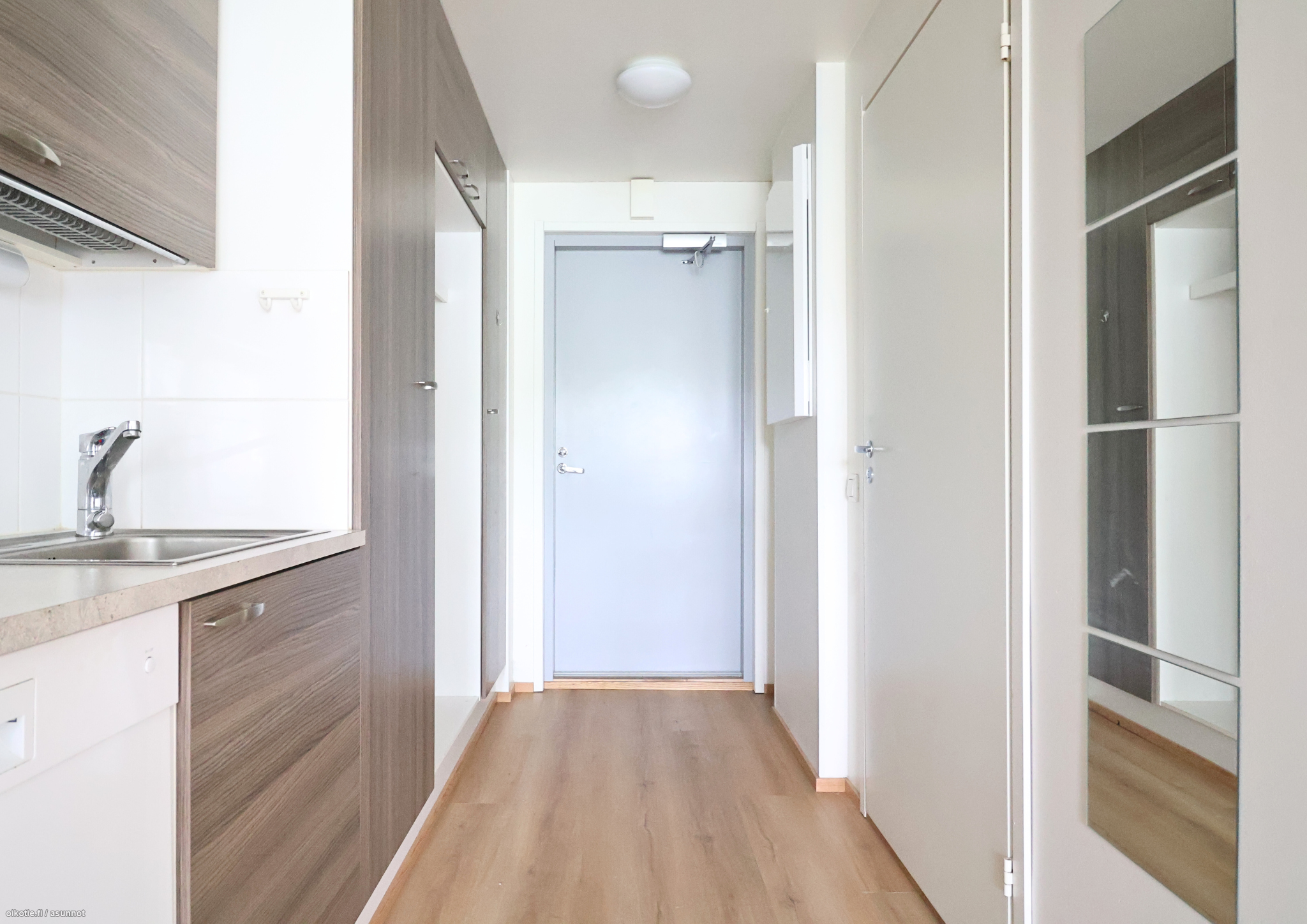 Tässä kodikkaassa yksiössä on tyylikäs keittiö nykyaikaisilla kodinkoneilla. Keittiön varusteluun kuuluvat astianpesukone, uuni ja liesi sekä jääkaappi-pakastin. Asunnon seinät ovat valkoisella maalipinnalla ja lattia on laminaattia. Oma terassi tuo lisämukavuutta asumiseen. Kylpyhuone on tilava ja sieltä löytyy paikka ja liitännät pyykinpesukoneelle. Viihtyisästä taloyhtiöstä löytyy jokaiselle asunnolle irtaimistovarasto.
