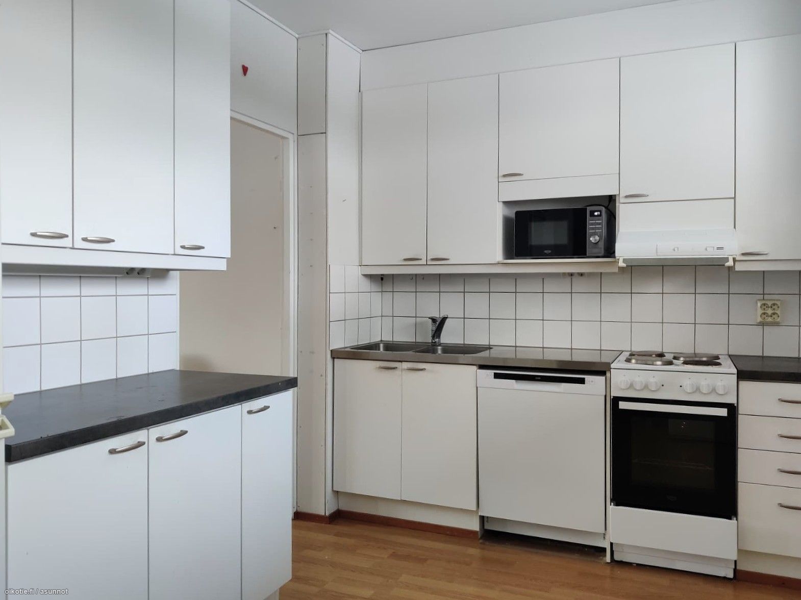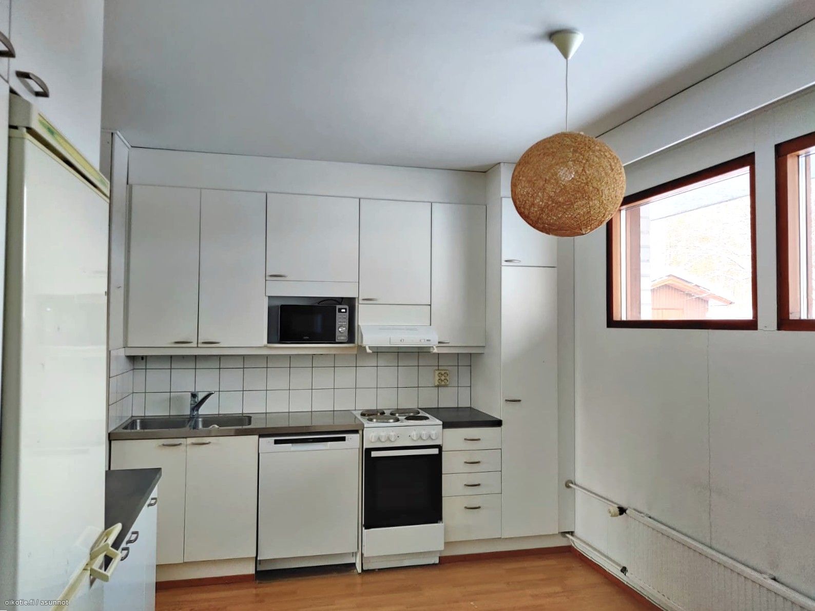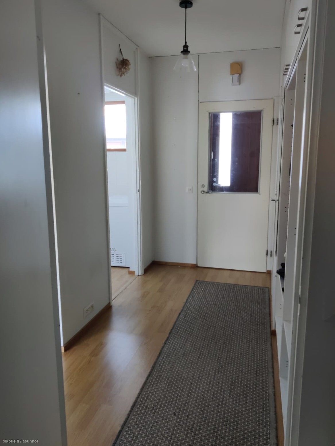 Lattiat ovat laminaattia ja seinät maalatut, joten yleisilme on siisti ja ajaton. Keittiössä on valkoiset kaapistot sekä varusteluna astianpesukone, jääkaappipakastin, keraaminen liesi ja paikka mikrolle. Kylpyhuoneeseen mahtuu oma pyykinpesukone, ja asunnossa on lisäksi oma sauna.