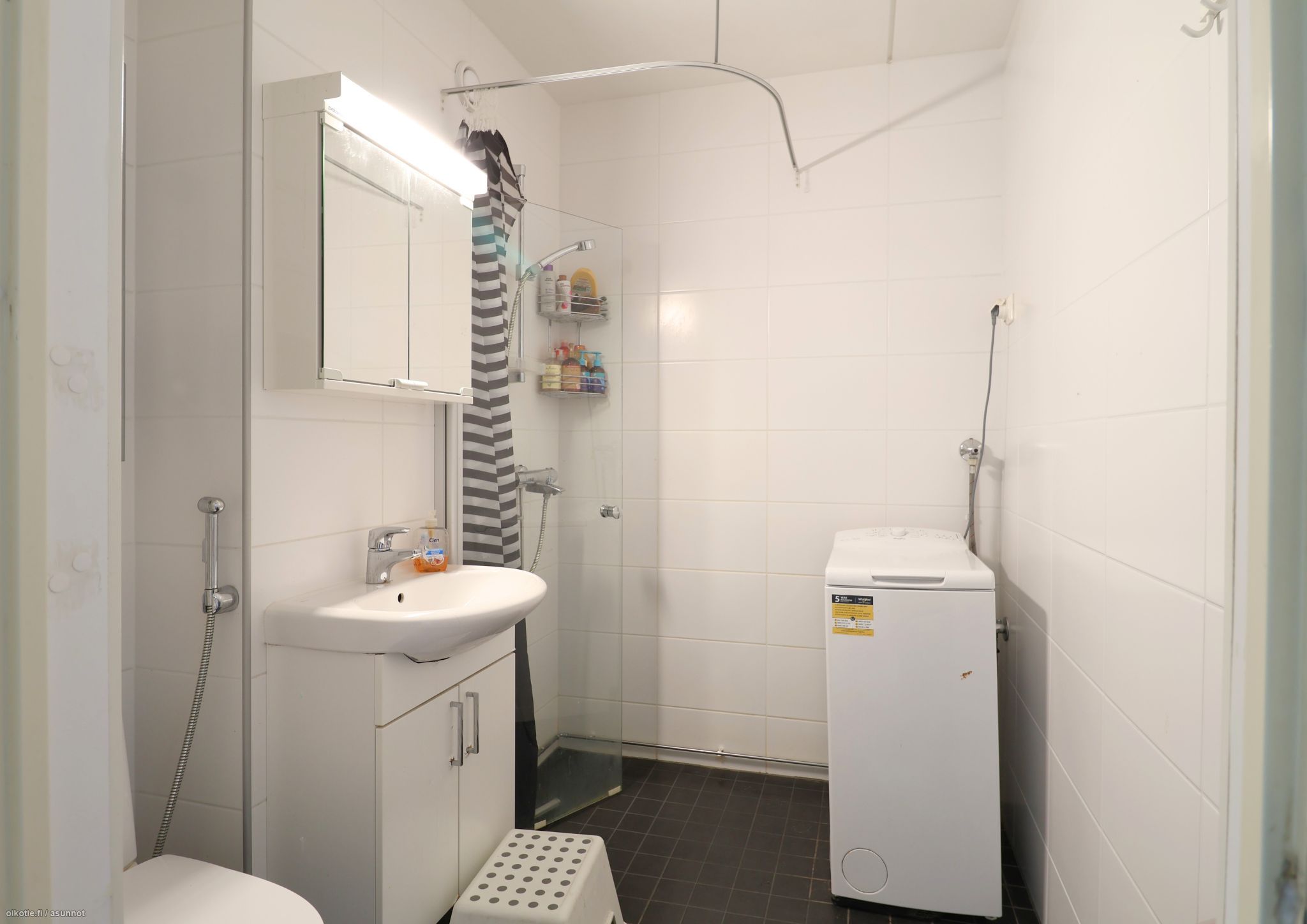 Asunnossa pinnat remontoitu 2017. Lattia on laminaattia, kylpyhuone laatoitettu. Kylpyhuoneessa on paikka ja liitännät pyykinpesukoneelle. Keittiössä varustuksena on jääkaappipakastin, astianpesukone ja uuni keraamisella liesitasolla. Asunnossa on tilavat huoneet ja runsaasti säilytystilaa.