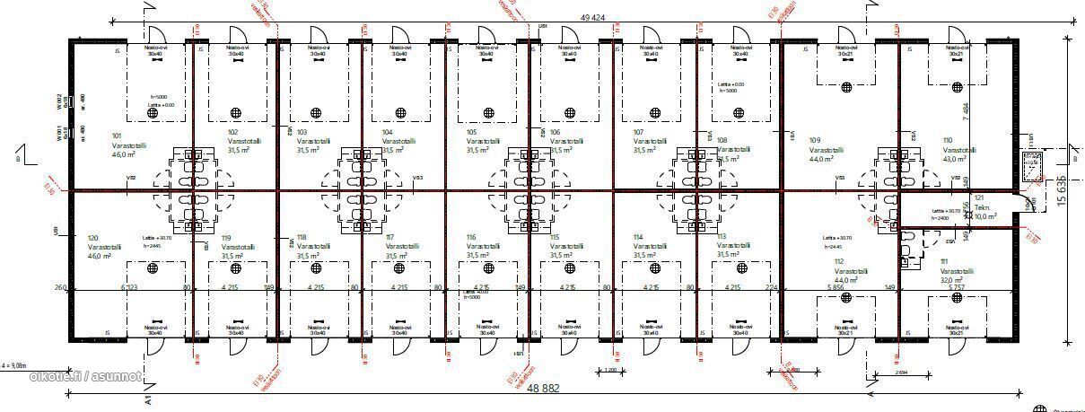 Tallin lattia pinta-ala 31,5m2. Sisäkorkeus 5 metriä ja nosto-ovi 3m x 4m.