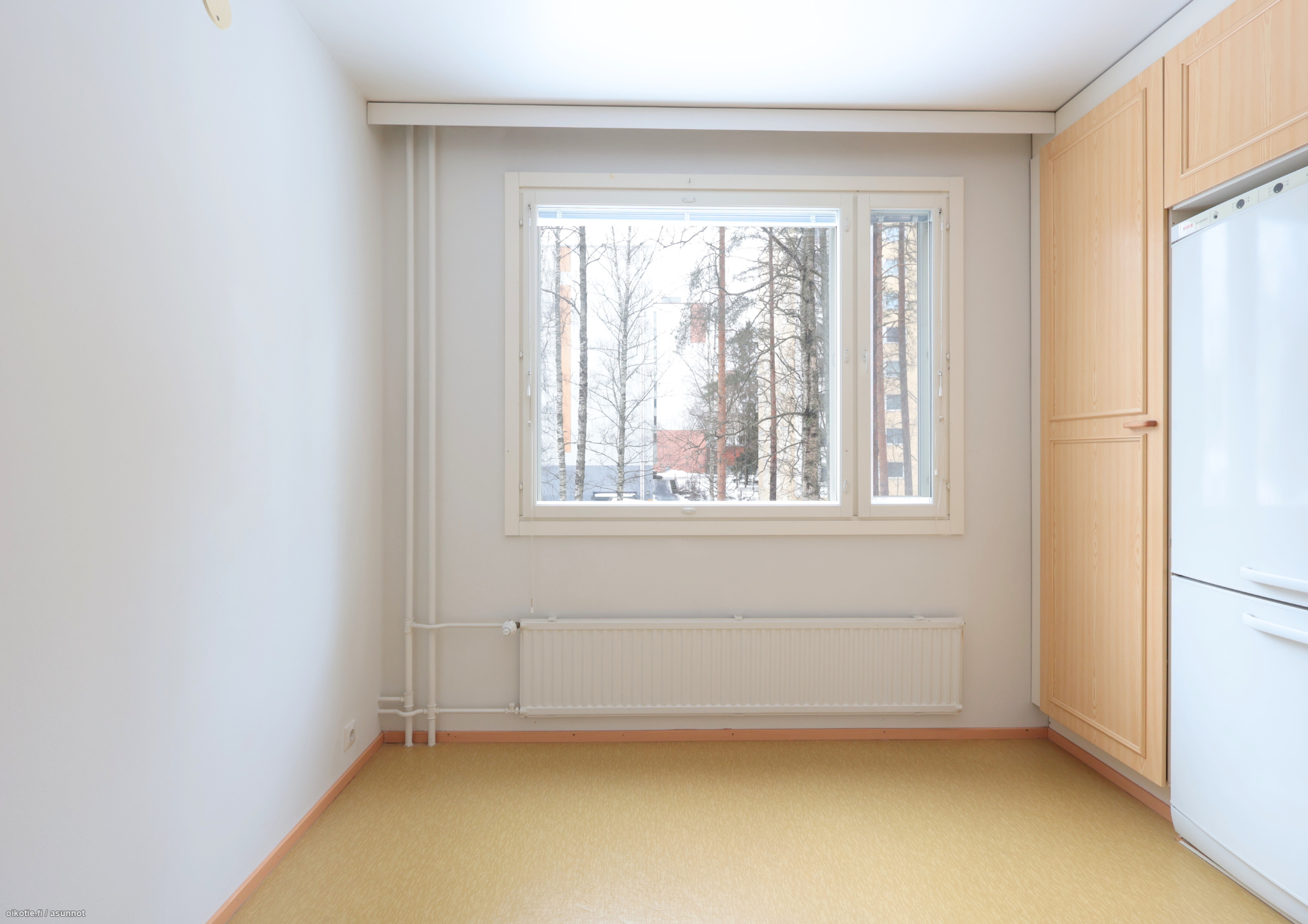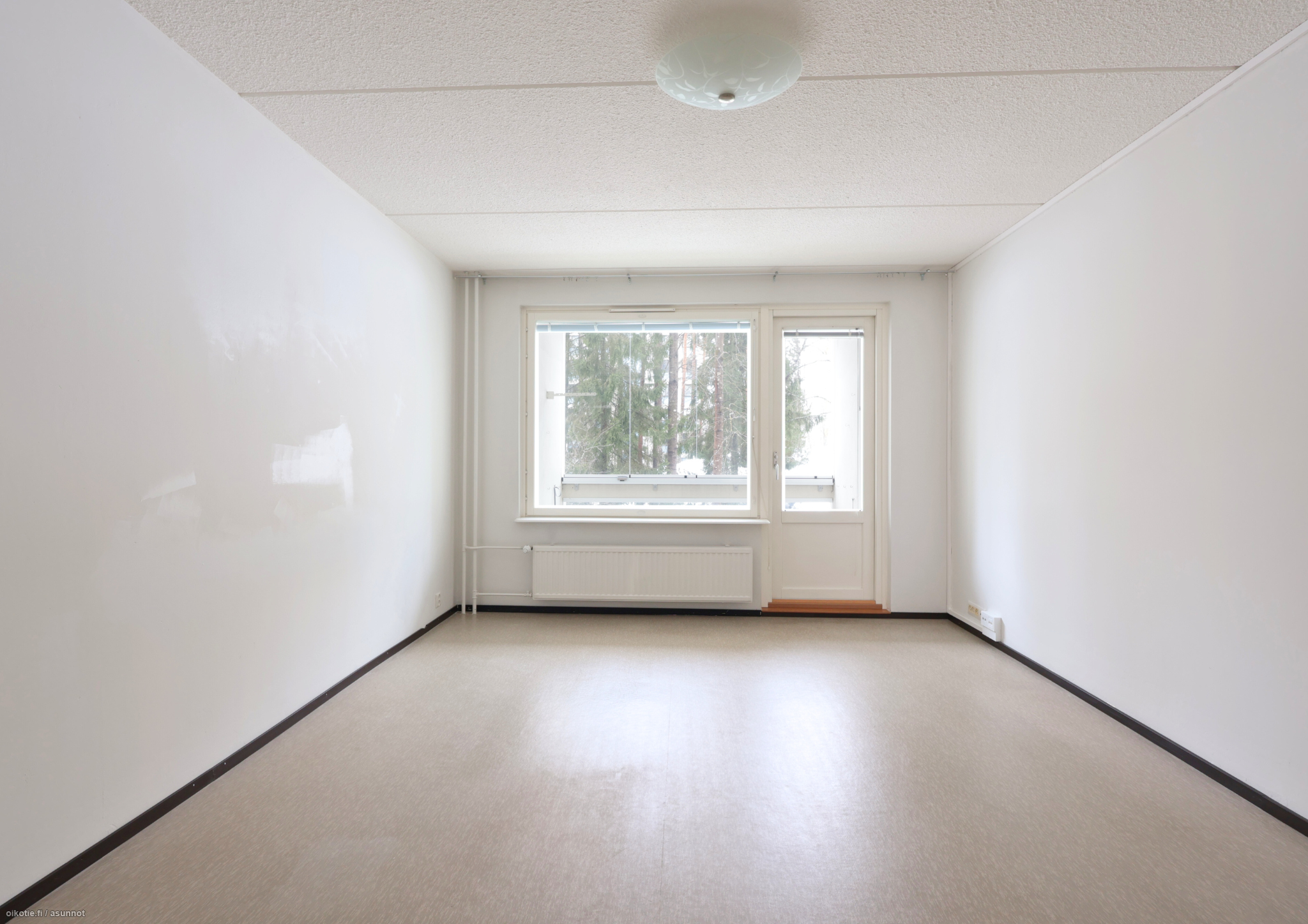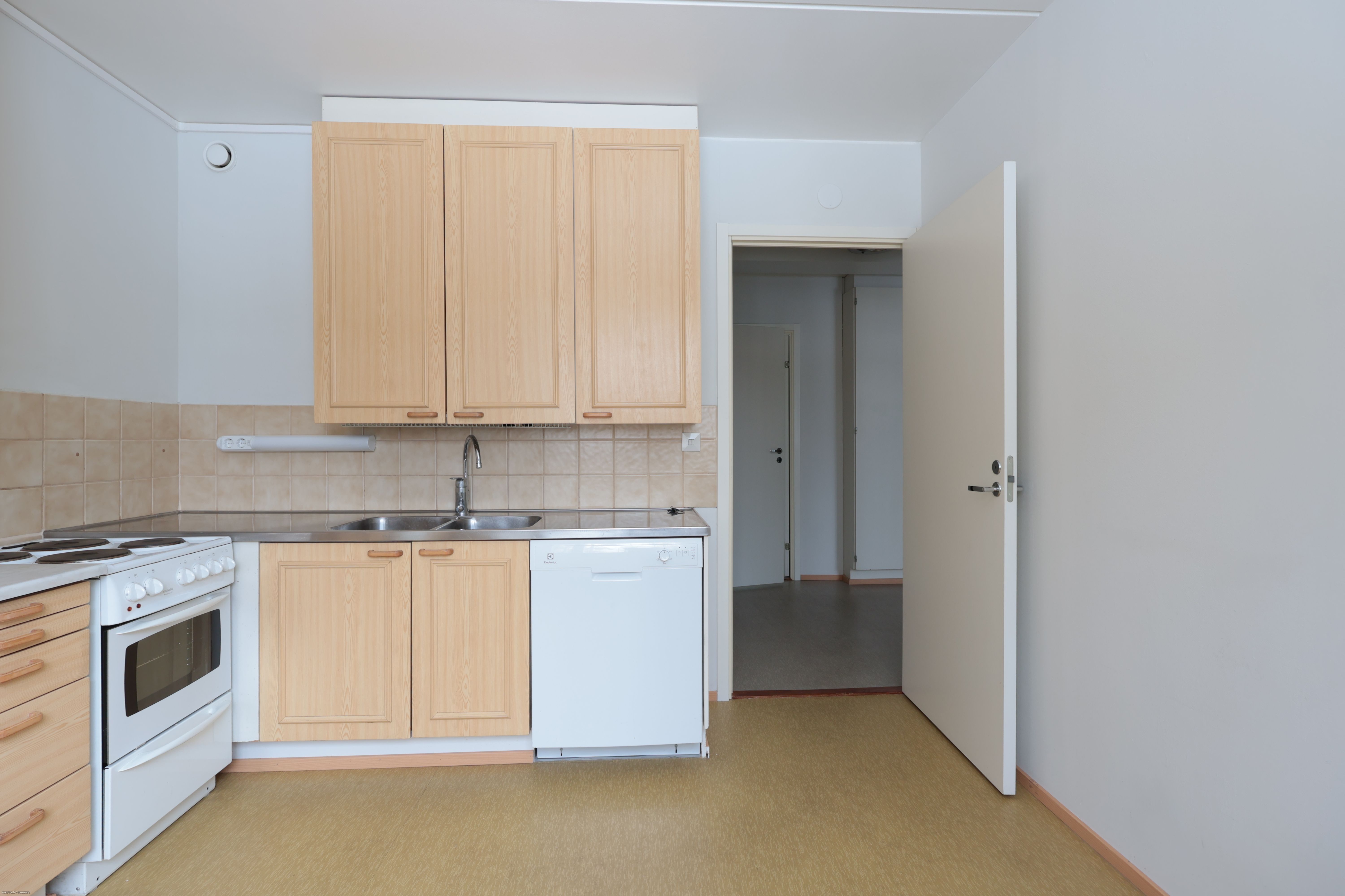 Asunto on läpitalon, mikä tuo ihanasti valoa asuntoon. Kaikista asunnon ikkunoista on kauniin vehreät maisemat. Asunnossa on lasitettu parveke, johon käynti olohuoneesta. Asunnon lattiat ovat muovimattoa ja seinät maalaten, Kylpyhuone on tilava ja siellä on paikka ja liitännät pyykinpesukoneelle. Säilytystilaa on mukavasti suuren vaatekaapin johdosta. Erillisestä keittiöstä löytyy: jääkaappipakastin, astianpesukone, hella sekä mukavasti laskutilaa.