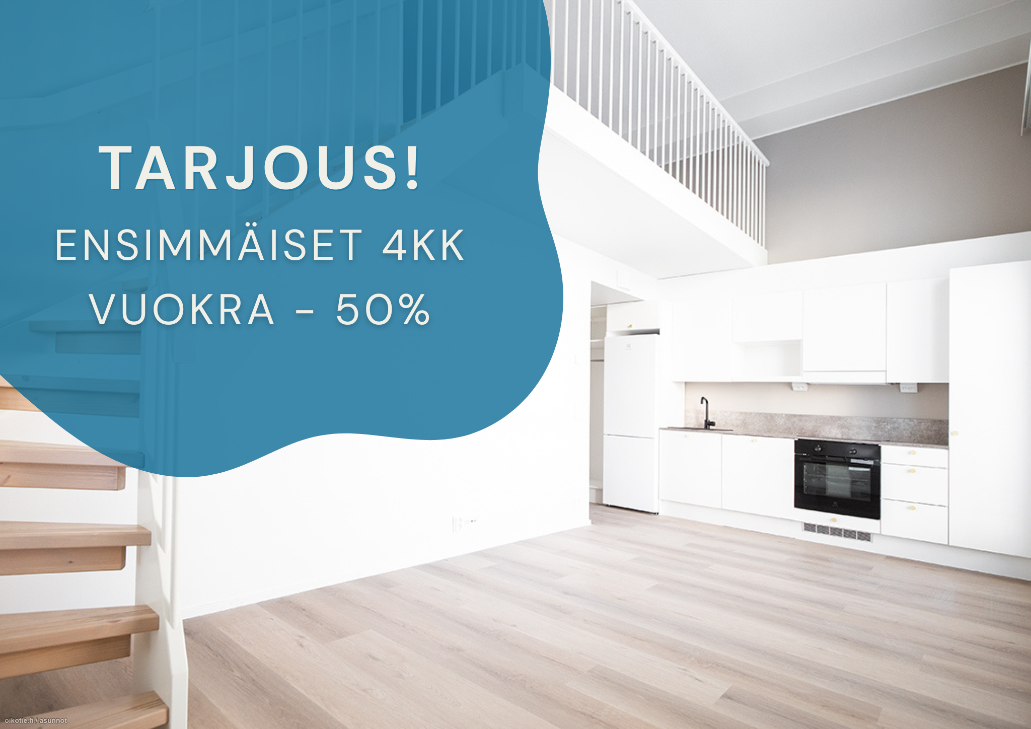**ENSIMMÄISEN 4KK:N VUOKRA -50%** Vuokra tarjouksen jälkeen 738€/kk