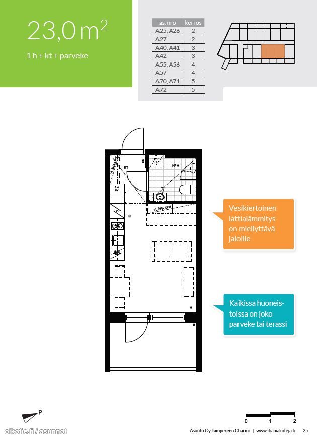 | Huoneiston kokoonpano | 1h+kt+parveke |
