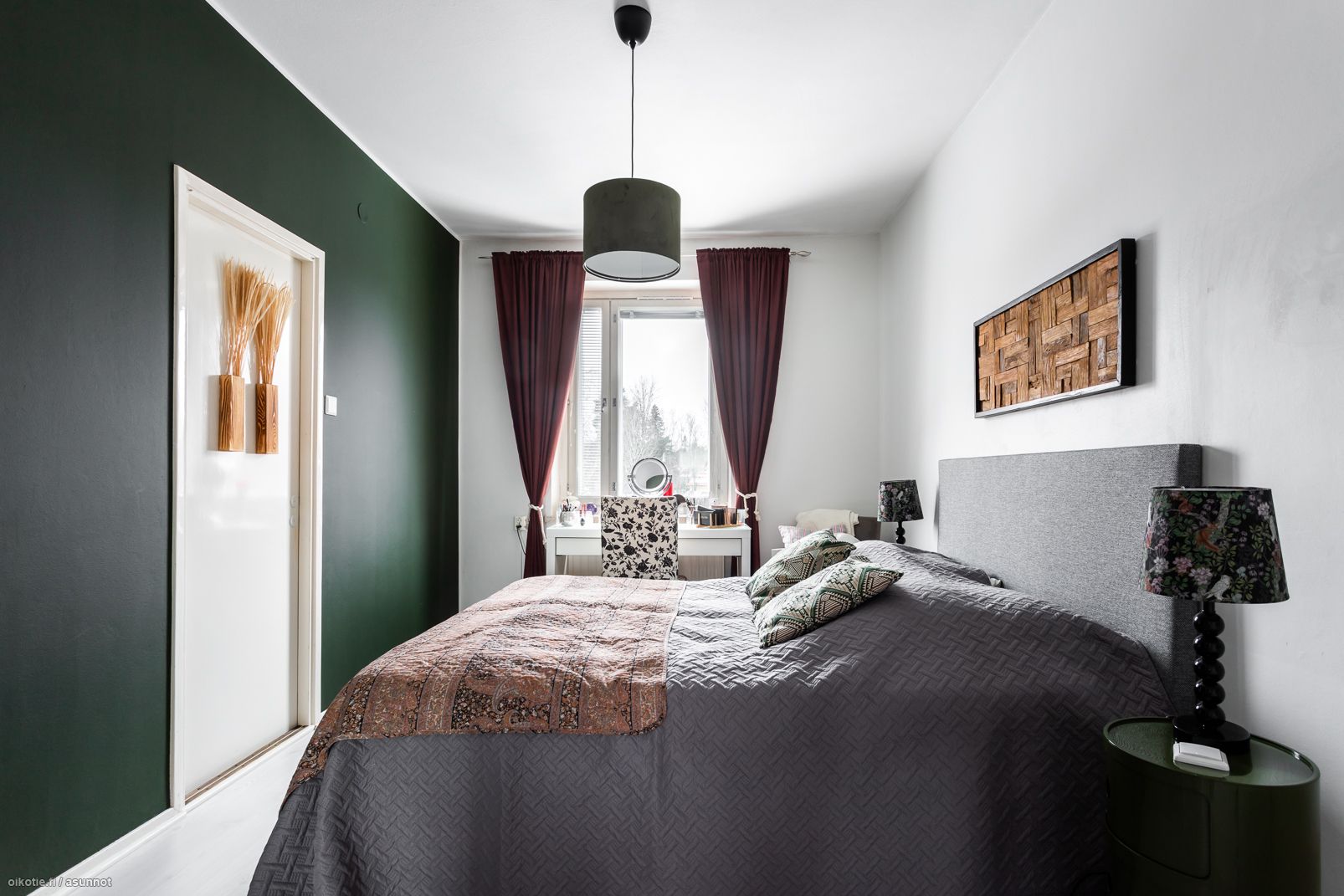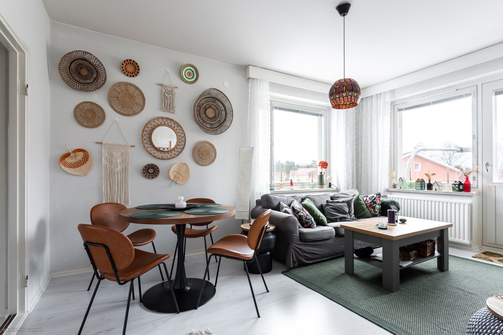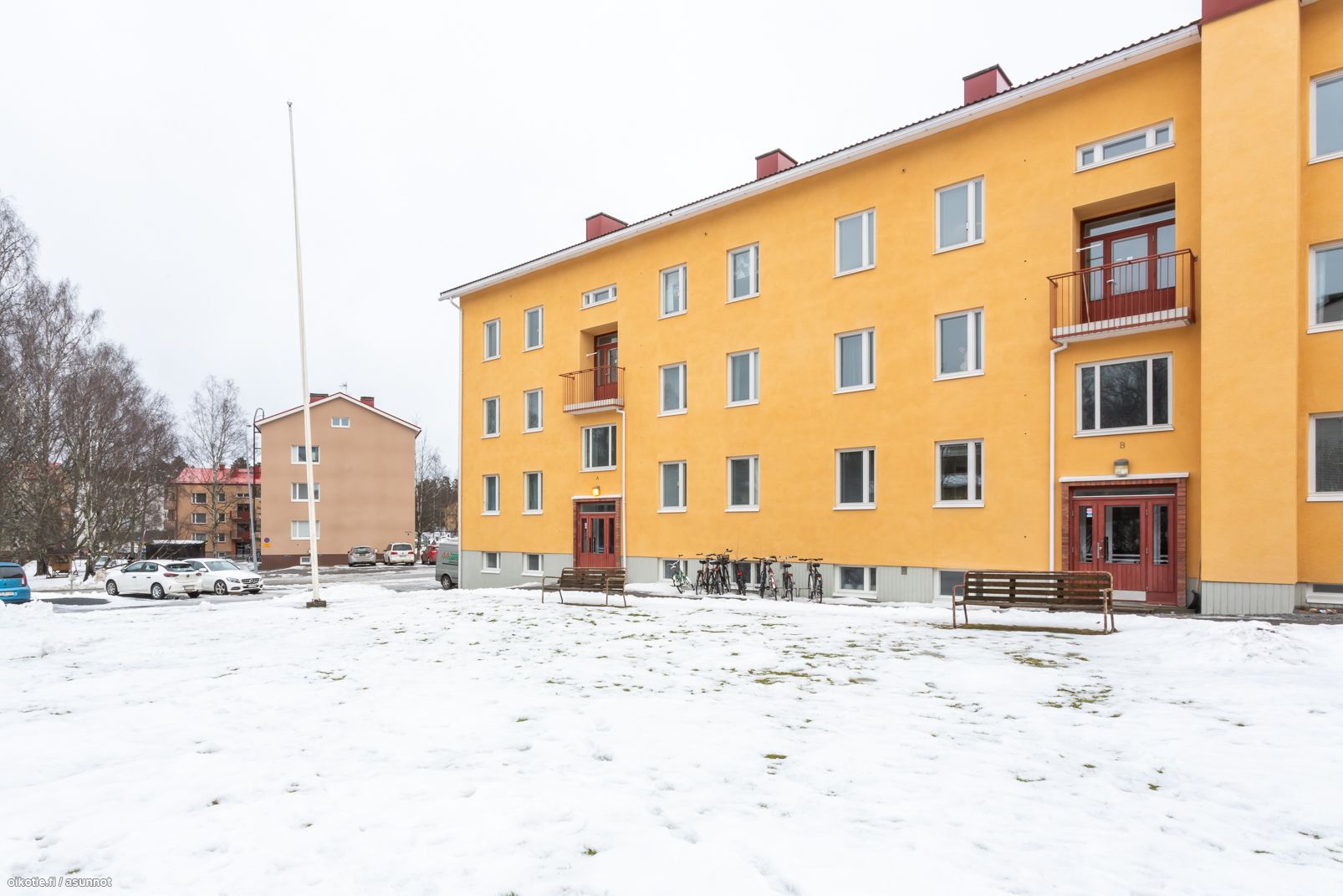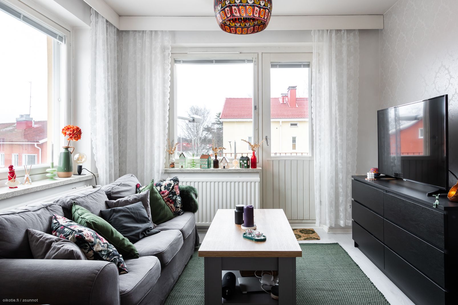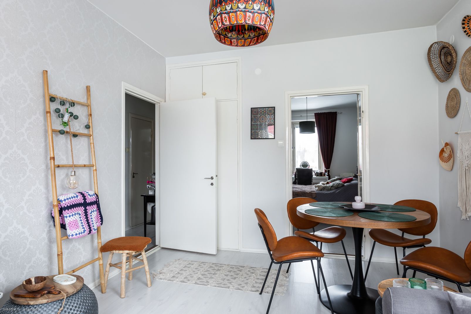 Ylimmän kerroksen huoneisto tarjoaa miellyttävät näkymät ja toimivan pohjaratkaisun. Tyylikkäästi uudistettu keittiö on varustettu nykyaikaisilla kodinkoneilla, ja kylpyhuoneeseen mahtuu pesukone. Olohuoneesta avautuu viihtyisä parveke, joka tuo tilaan valoa ja avaruutta.