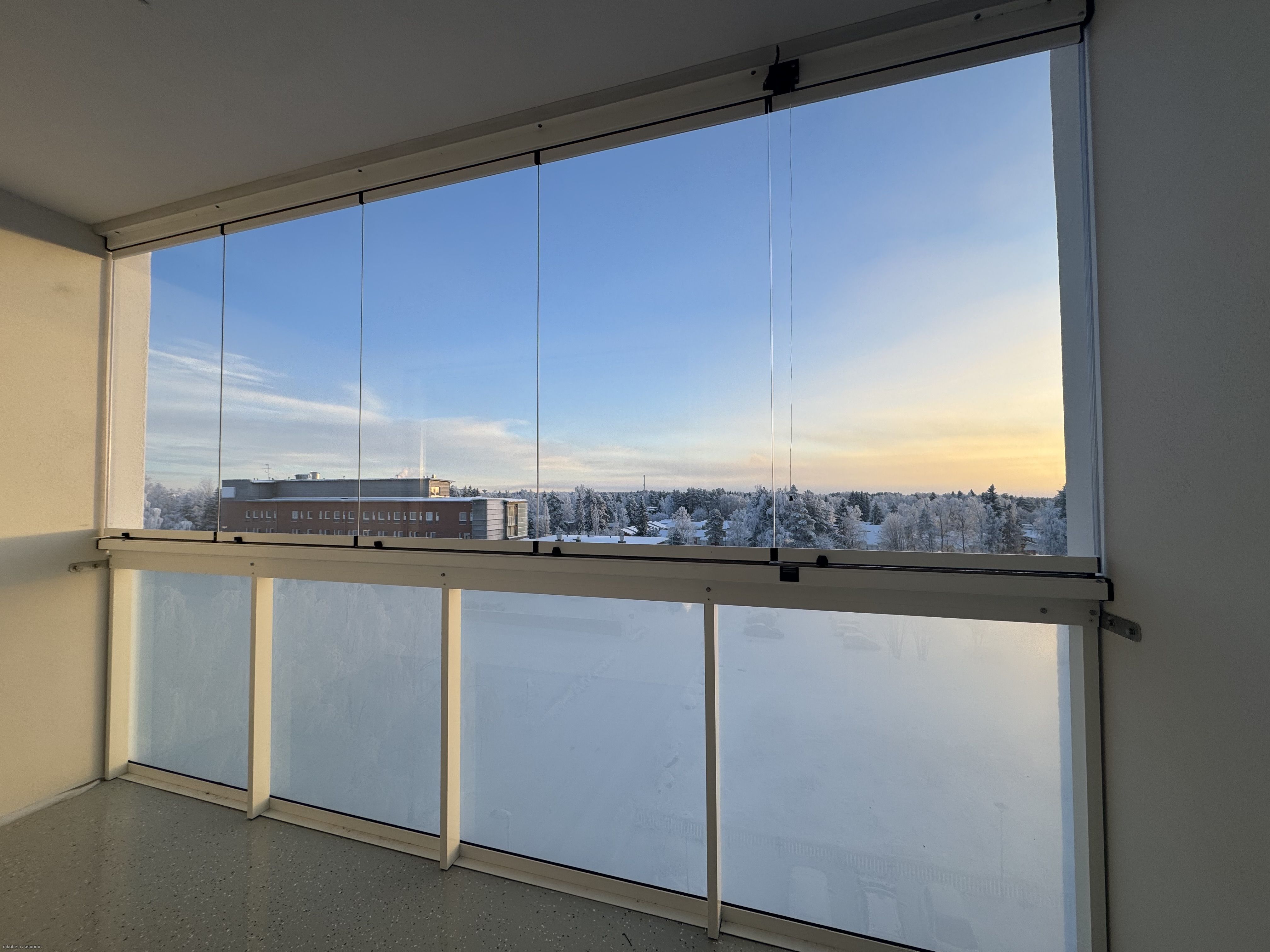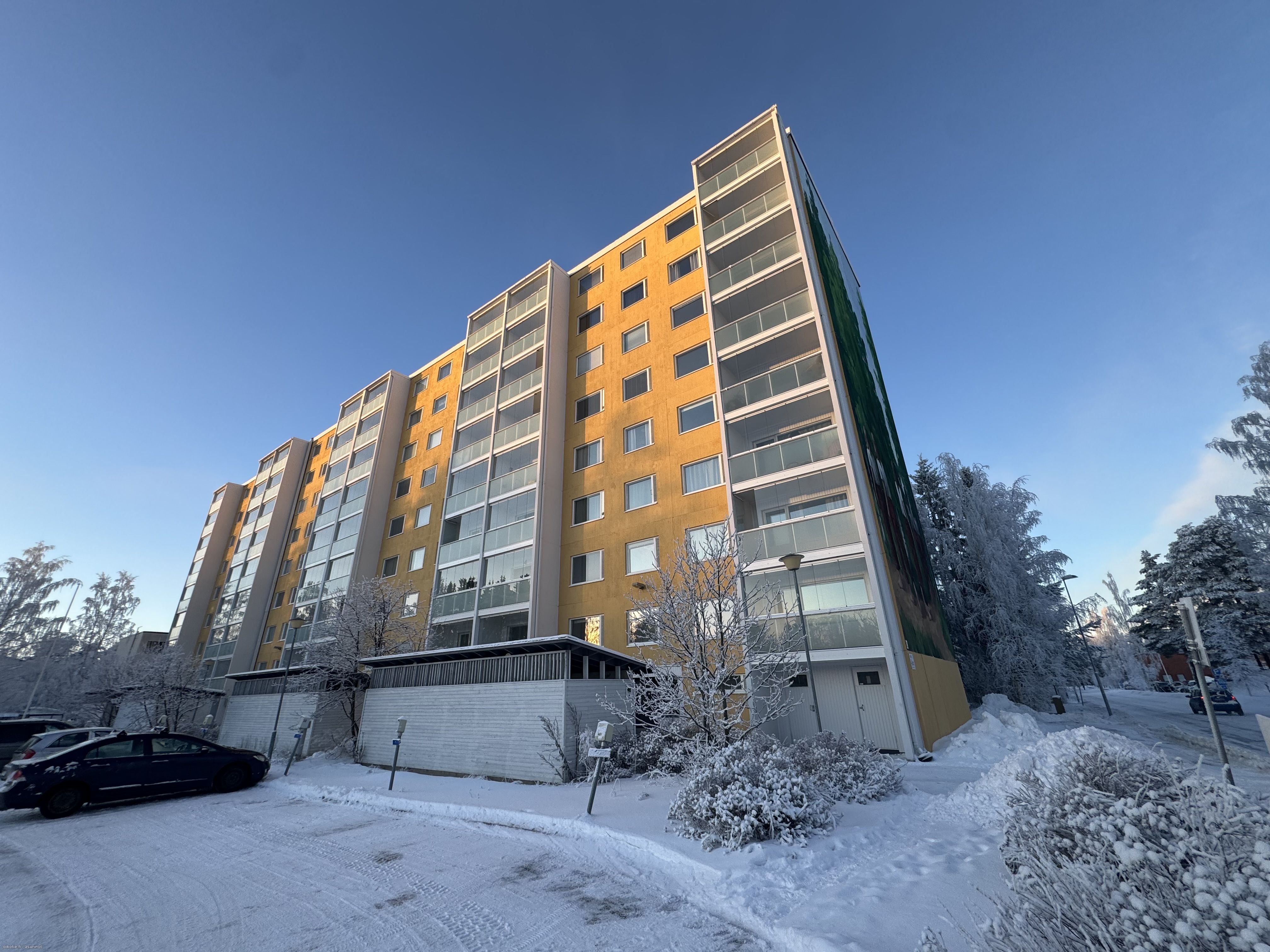 Vuokrataan Rajakylästä valoisa, heti vapaa kolmio talon kuudennesta (6/8) kerroksesta.