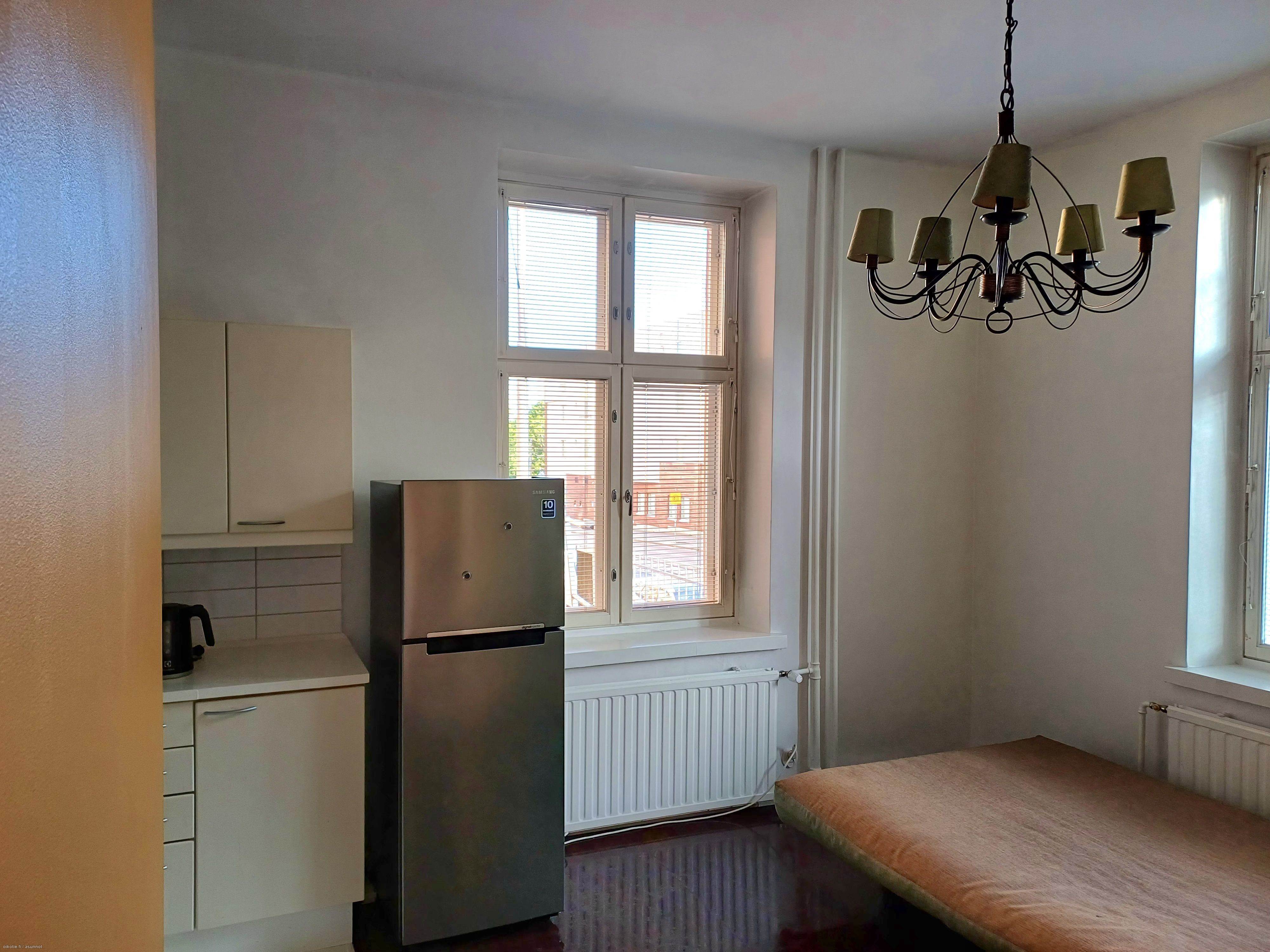 Tämä yksiö sijaitsee ensimmäisessä kerroksessa. Asunnossa on paljon säilytystilaa, moderni keittiö sekä tilava kylpyhuone jossa varaus pyykinpesukoneelle. Normaalia korkeampi huonekorkeus avartaa asuntoa paljon ja saa sen tuntumaan todella tilavalta!
