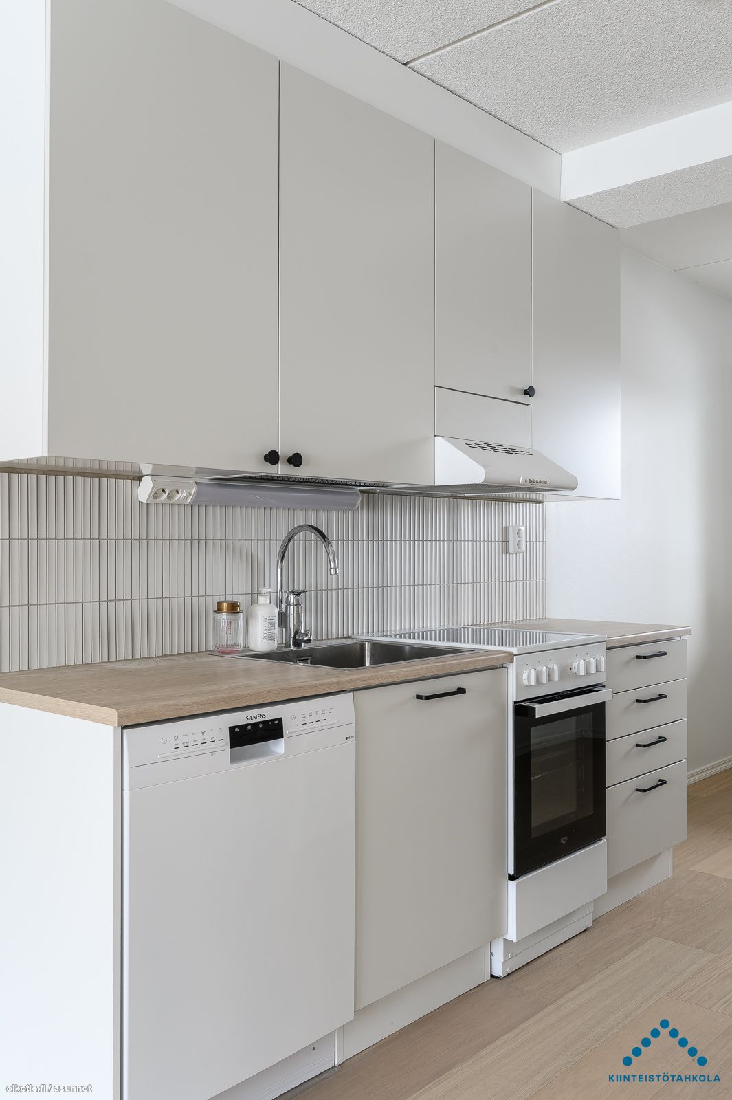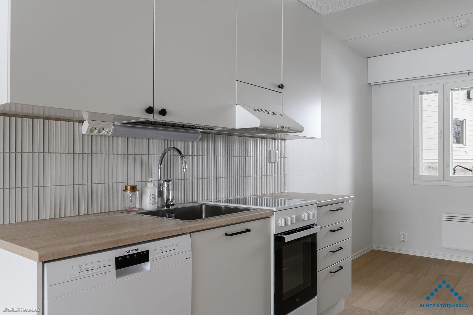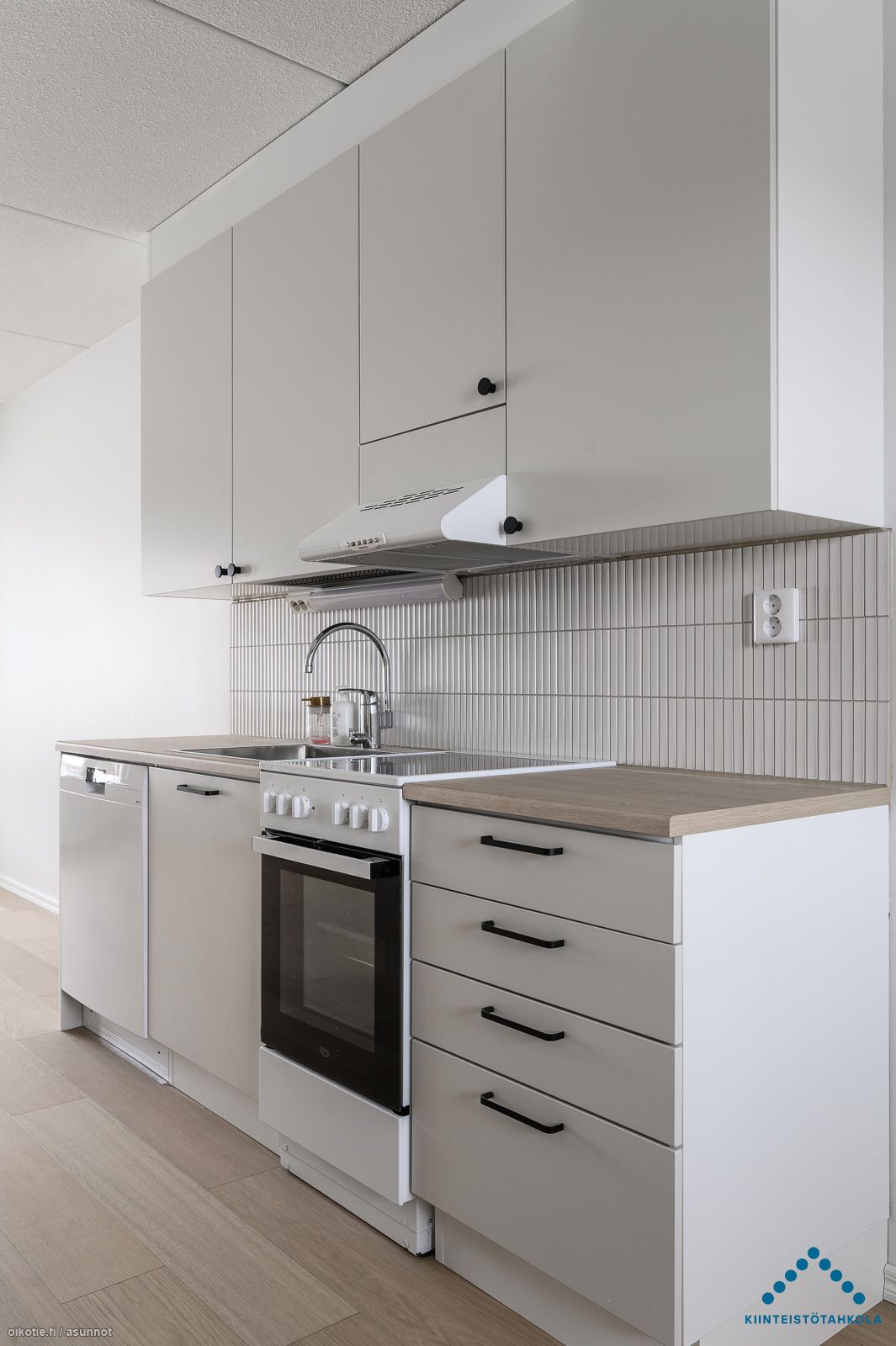 | Keittiön varusteet | Varusteet: jääkaappipakastin, astianpesukone. Työtaso: laminaattitaso. Liesi: sähköliesi |