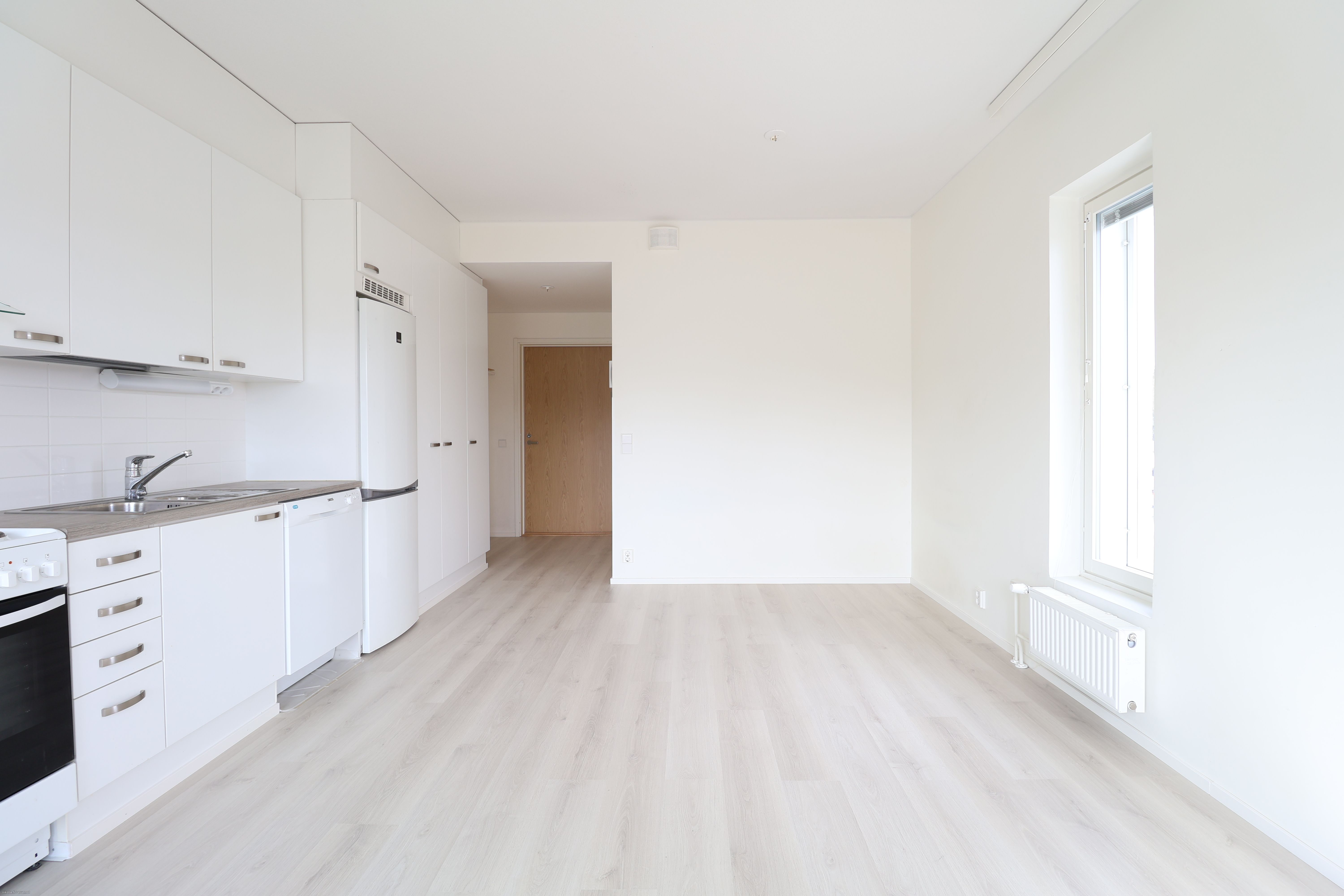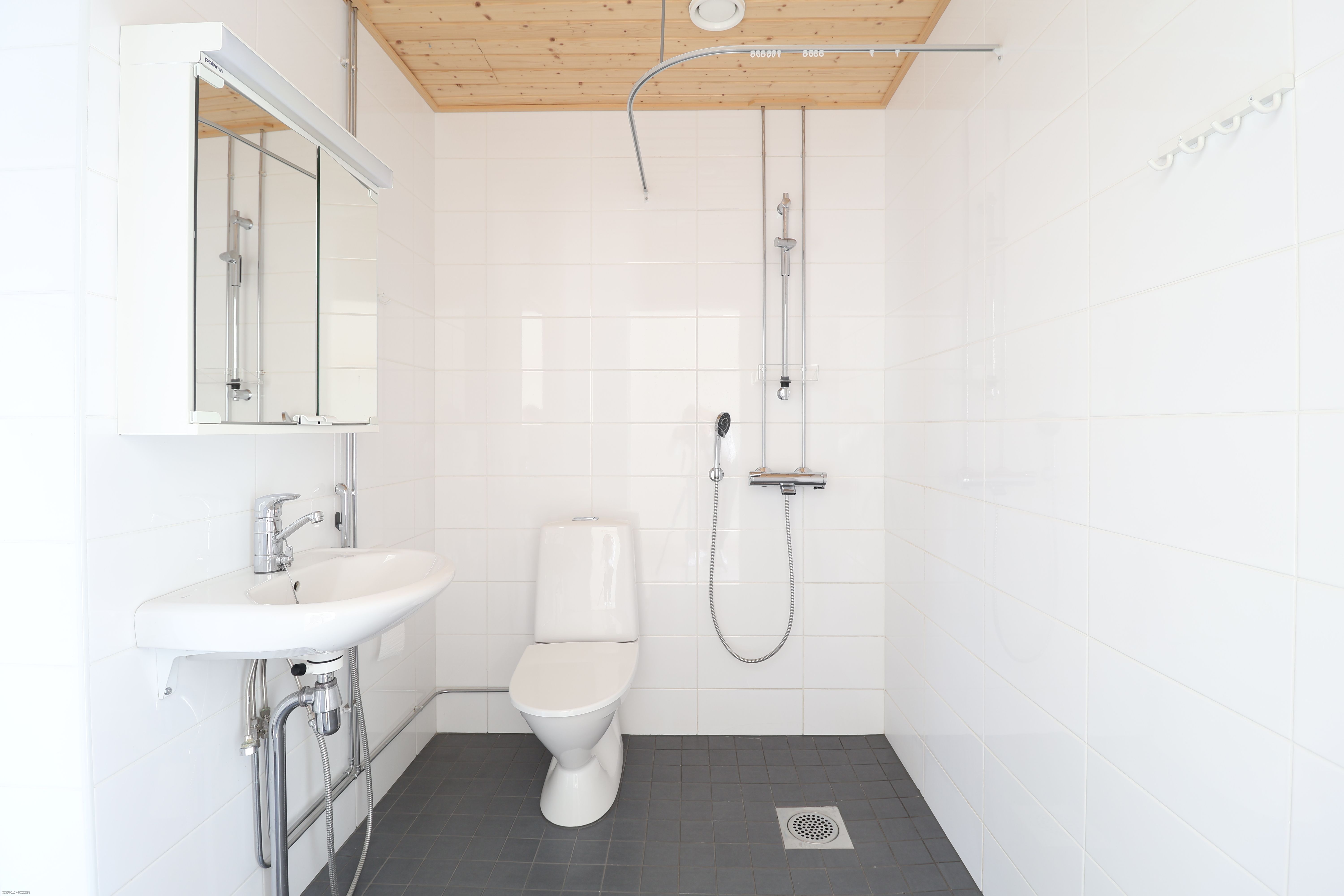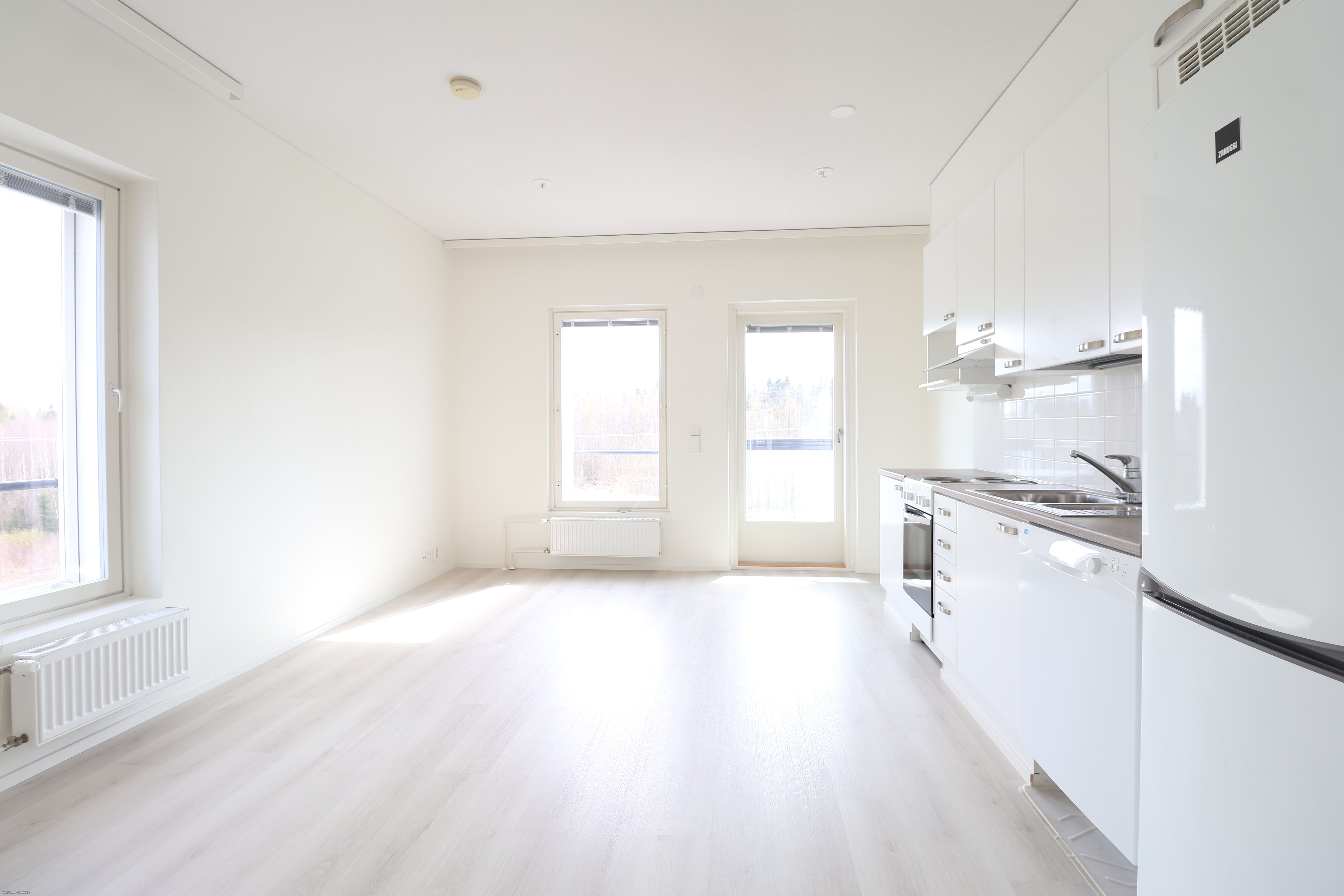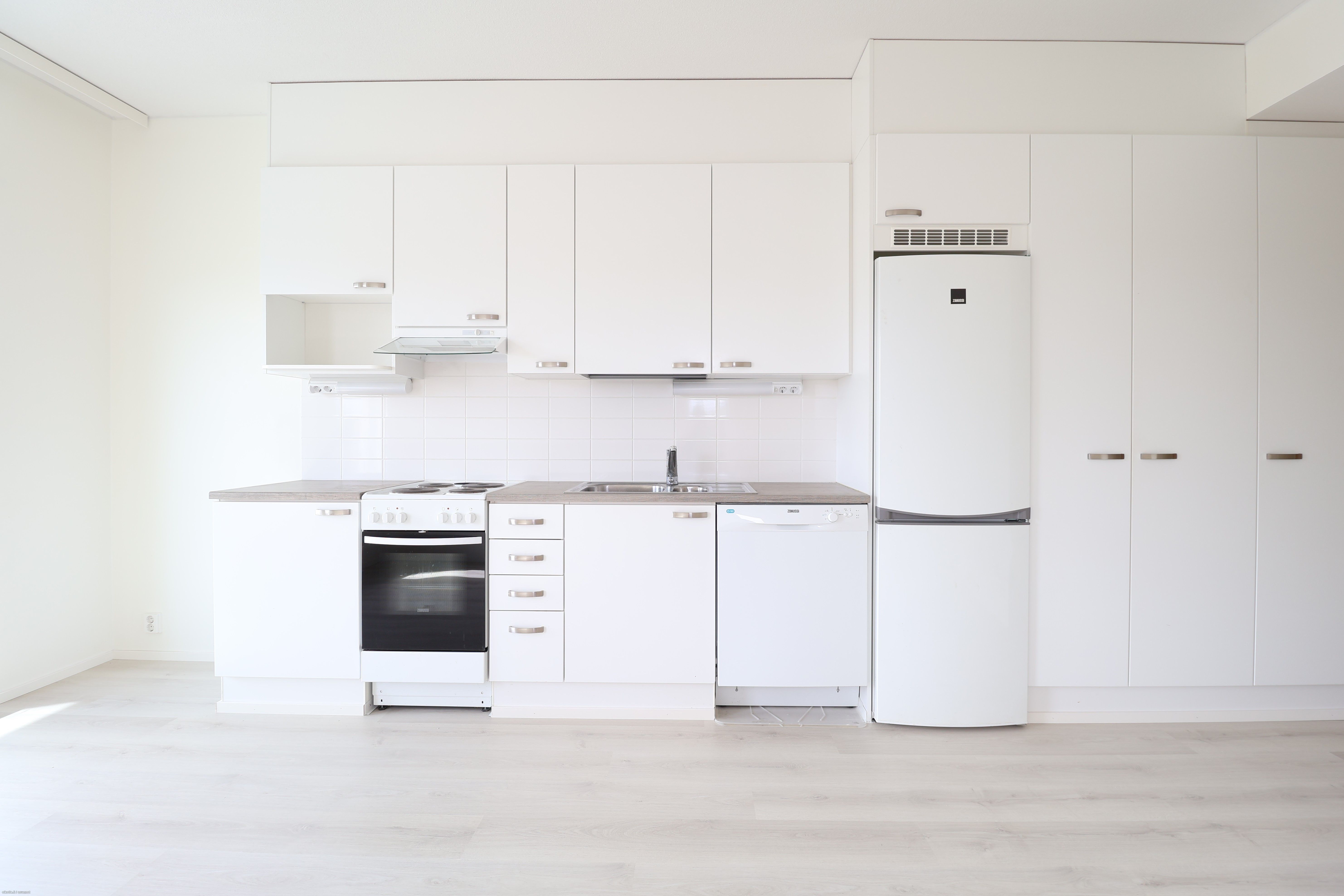 Kodissa on vaaleat seinät ja kaunis laminaattilattia. Keittiössä on mukavasti laskutilaa ja kodinkoneina löytyy jääkaappipakastin, astianpesukone sekä lattialiesi. Kylpyhuoneessa on paikka ja liitännät pyykinpesukoneelle. Kodissa on myös ihana lasitettu parveke. Taloyhtiössä on pesutupa ja sauna. Pesutupa on talon asukkaille maksuton!