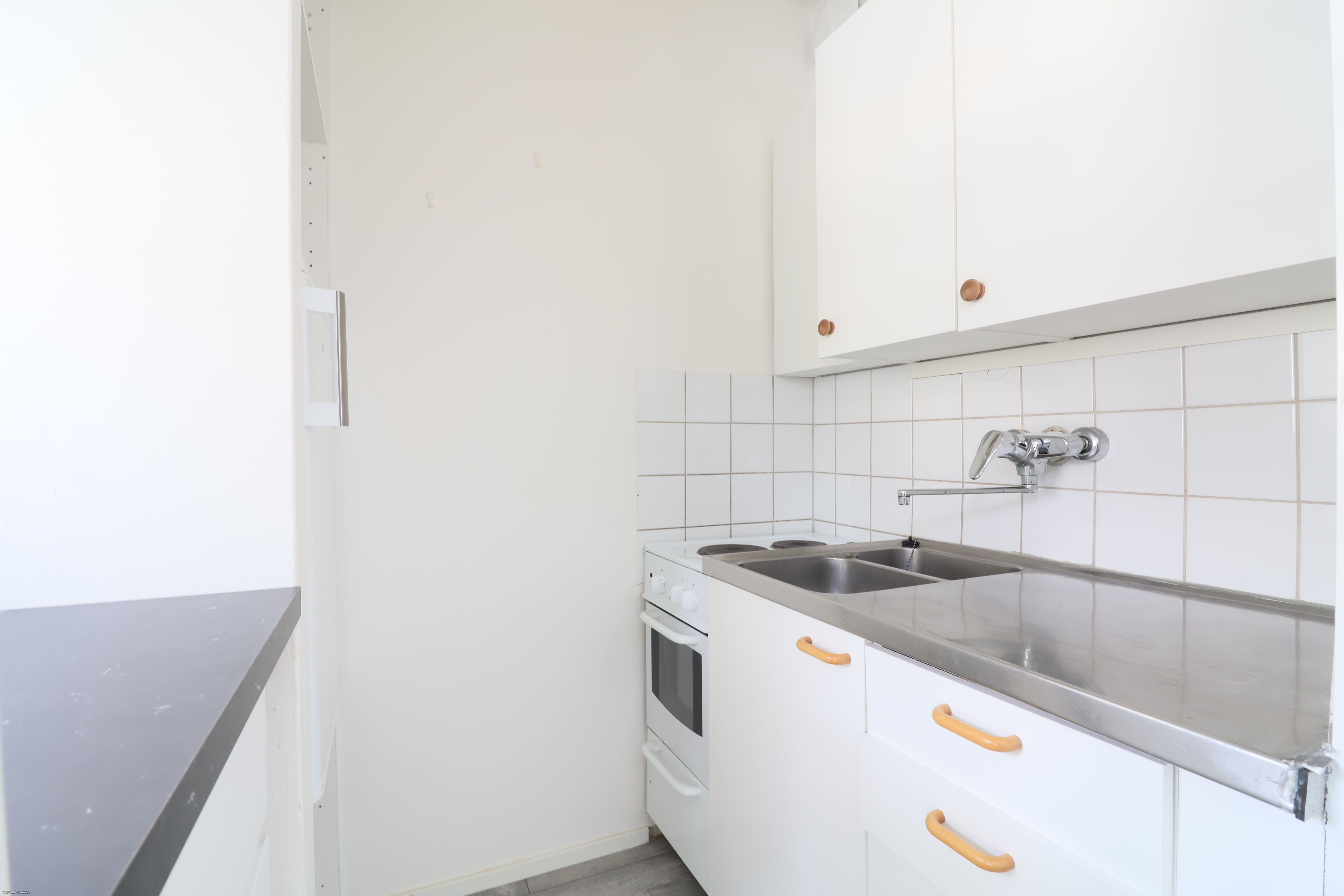 Asunnon pohjaratkaisu on selkeä ja helposti sisustettava. Sängyn saa sijoitettua alkoviin. Keittokomeron varustukseen kuuluu jääkaappi pakastelokerolla sekä liesi.