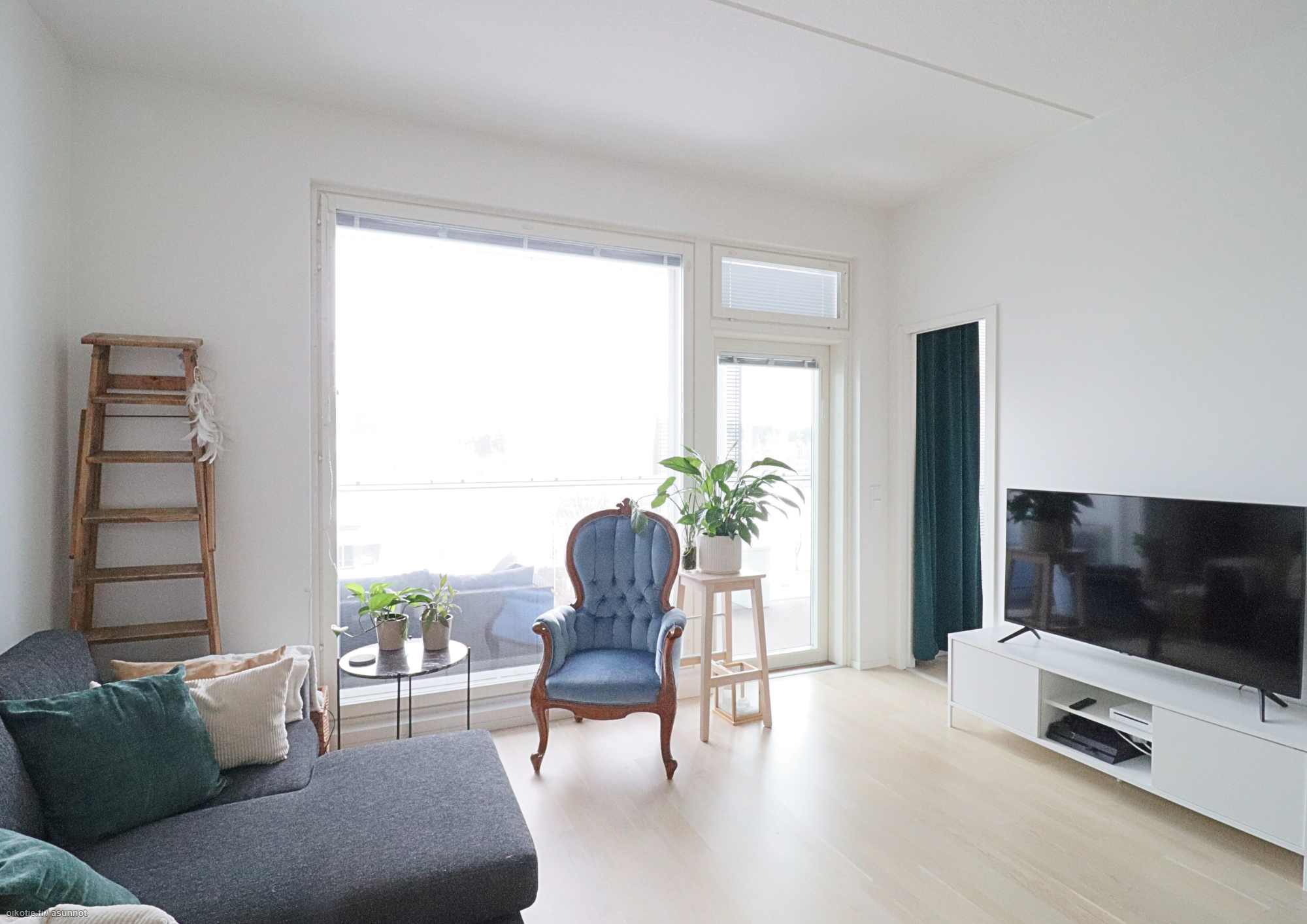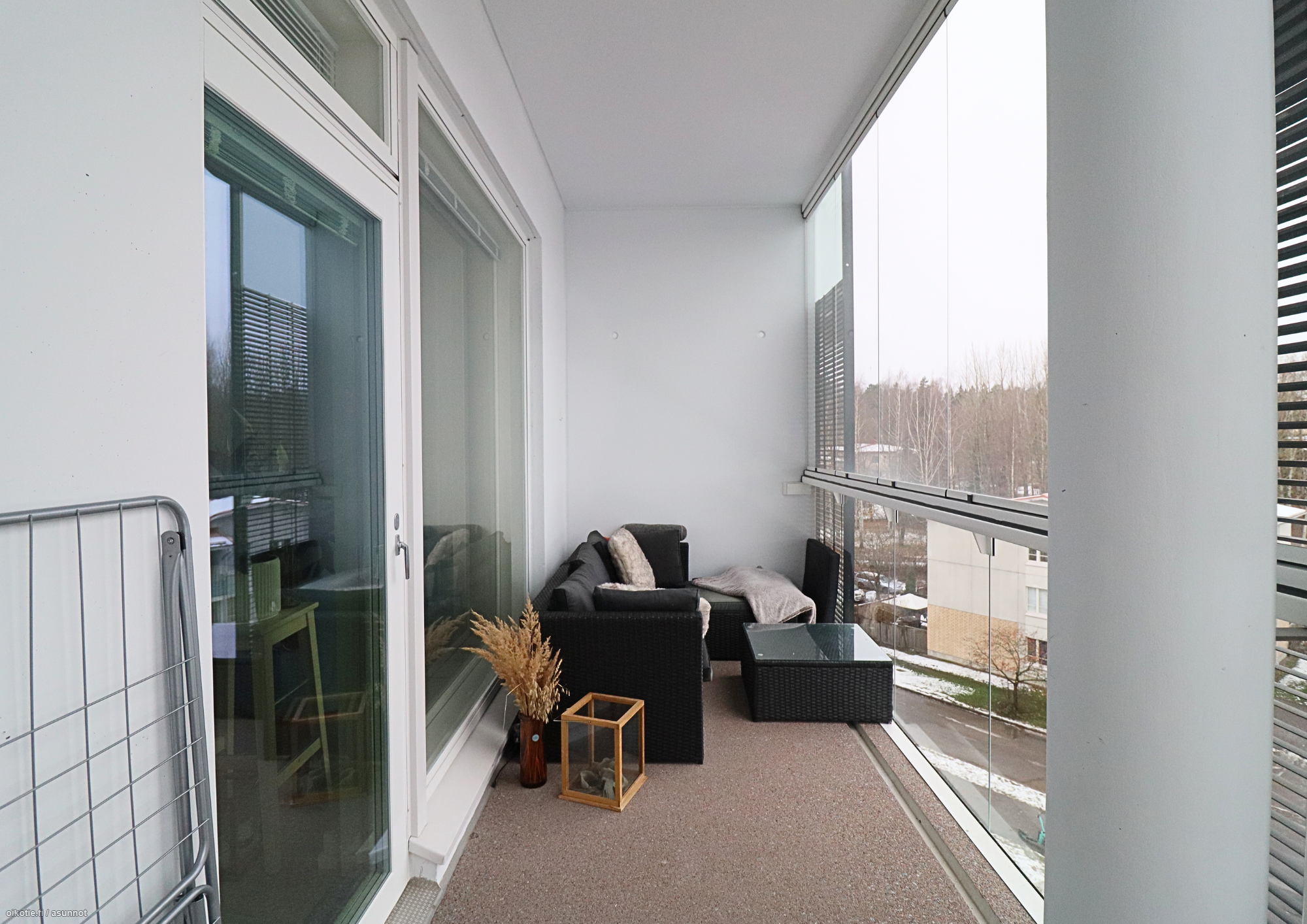 Viihtyisä kulmakaksio valtavalla lasitetulla parvekkeella!