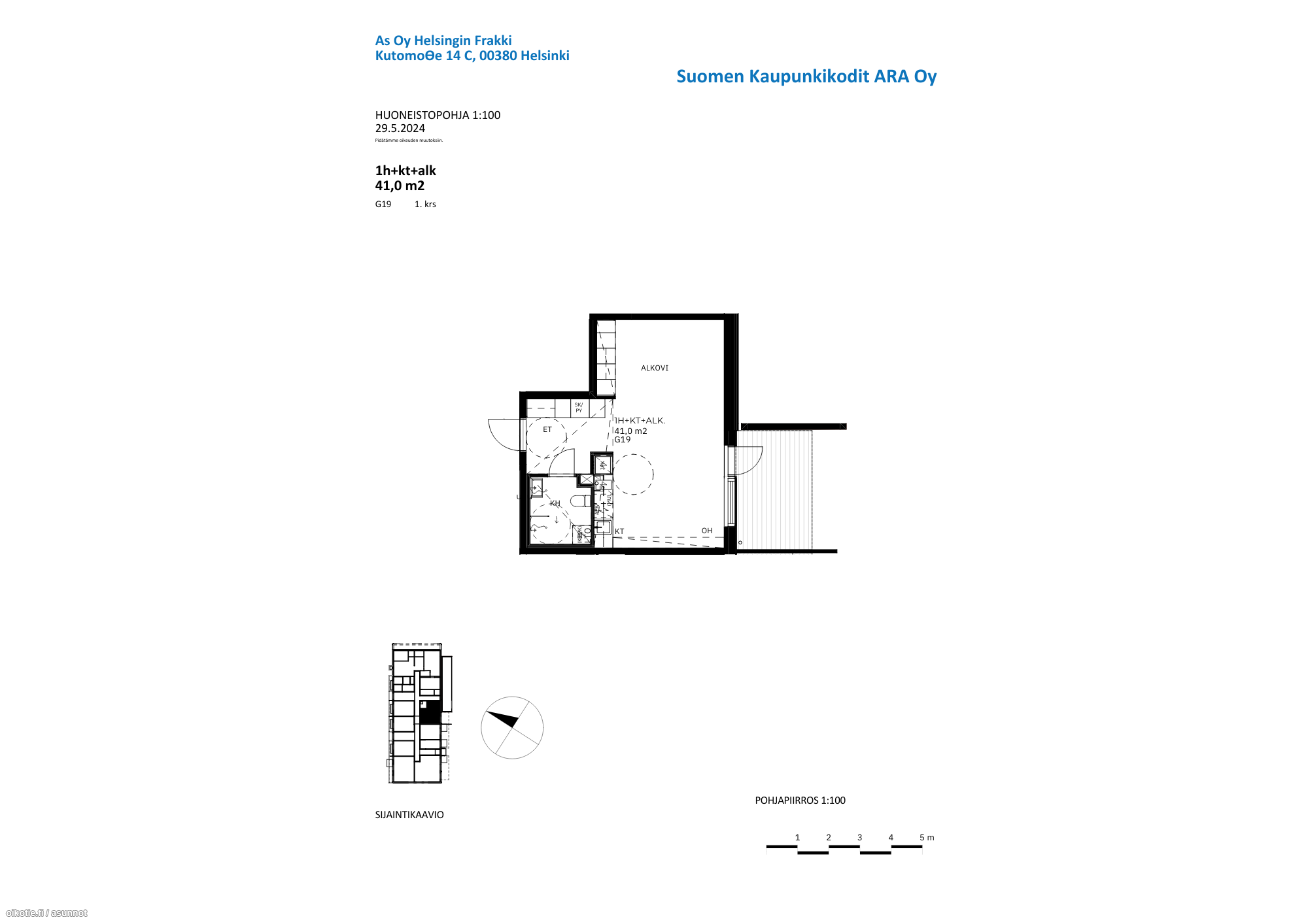 | Huoneiston kokoonpano | 1h+kt+alk |