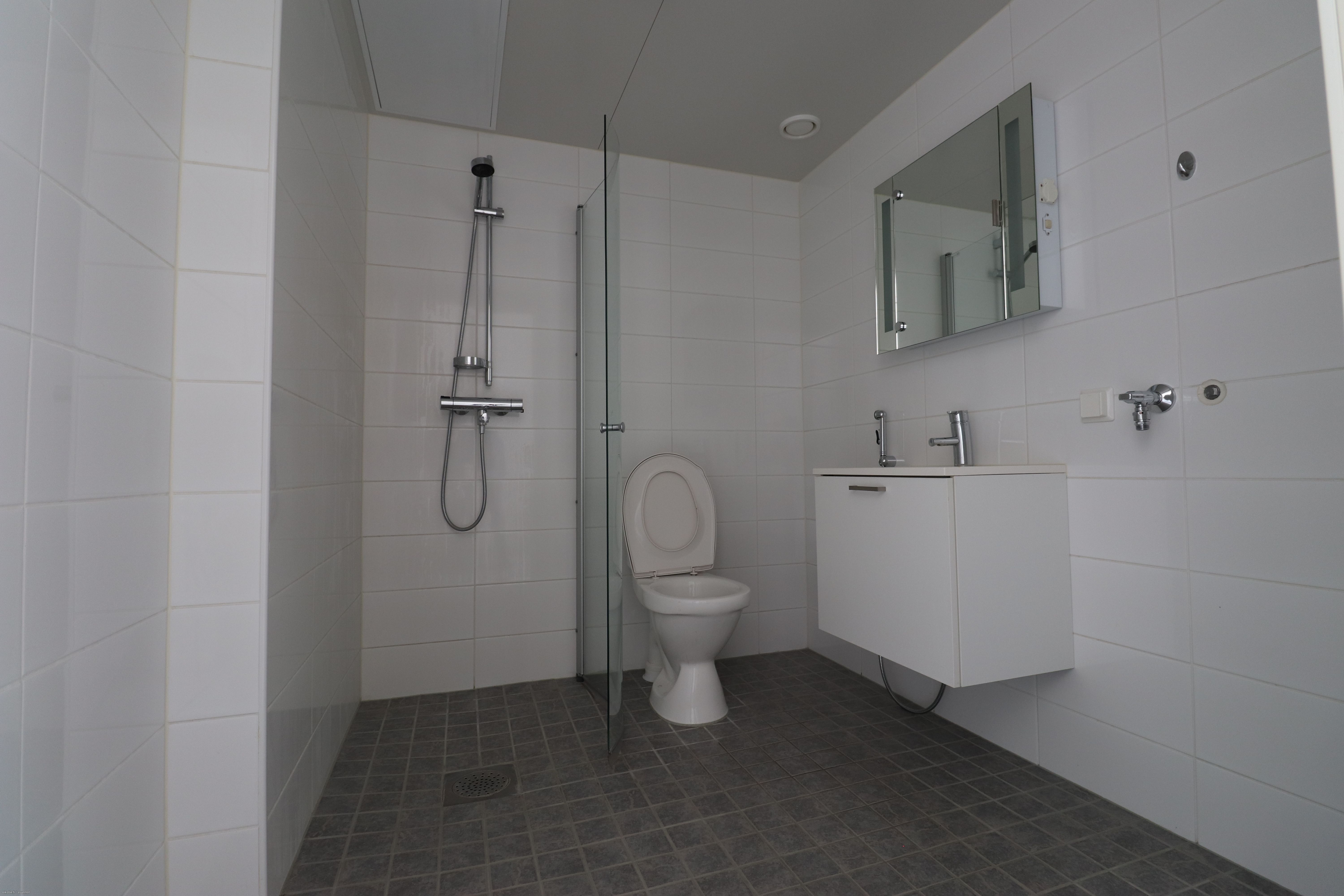 Asunnon lattia laminaattia ja seinät vaalealla maalipinnalla. Keittiö varustettu nykyaikaisilla kodinkoneilla, mm. keraaminen liesi ja astianpesukone kuuluu vakiovarusteisiin. Kylpyhuoneessa liitäntä pyykinpesukonelle. Taloyhtiössä sauna, joista voi varata erikseen vuoron taloyhtiön hinnaston mukaan.