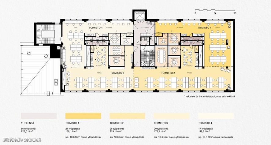 Tämä toimistotilakokonaisuus sijaitsee rakennuksen ylimmässä 3. kerroksessa.
