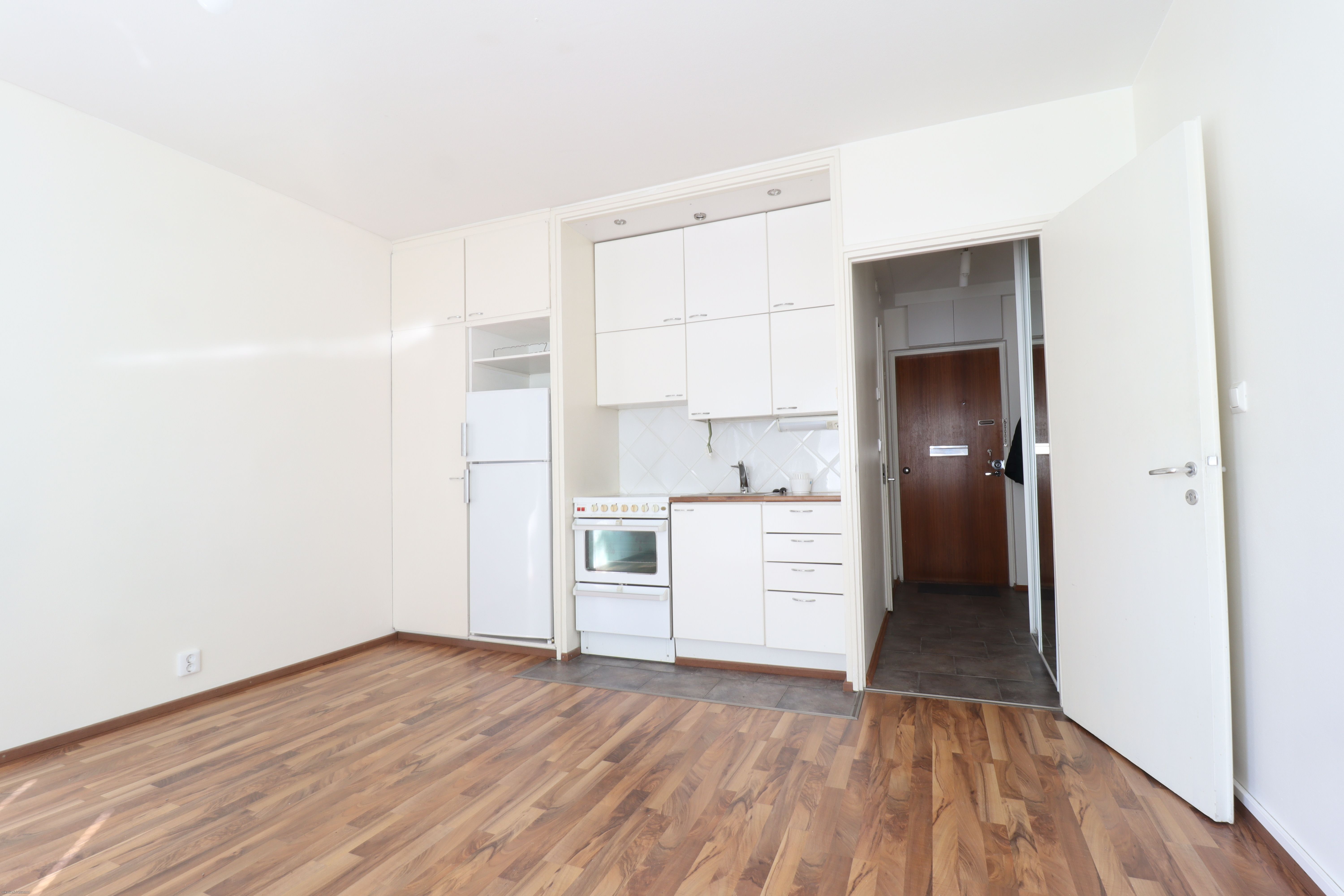 Asunnossa on käytännöllinen pohjaratkaisu, laminaattilattiat sekä vaaleat maalatut seinäpinnat, jotka luovat raikkaan ja valoisan ilmeen. Keittiöstä löytyy liesi ja jääkaappipakastin. Kaakeloitu kylpyhuone on hiljattain uusittu ja siellä on liitännät sekä tila pienelle pyykinpesukoneelle. Ranskalainen parveke avautuu rauhalliselle takapihalle.