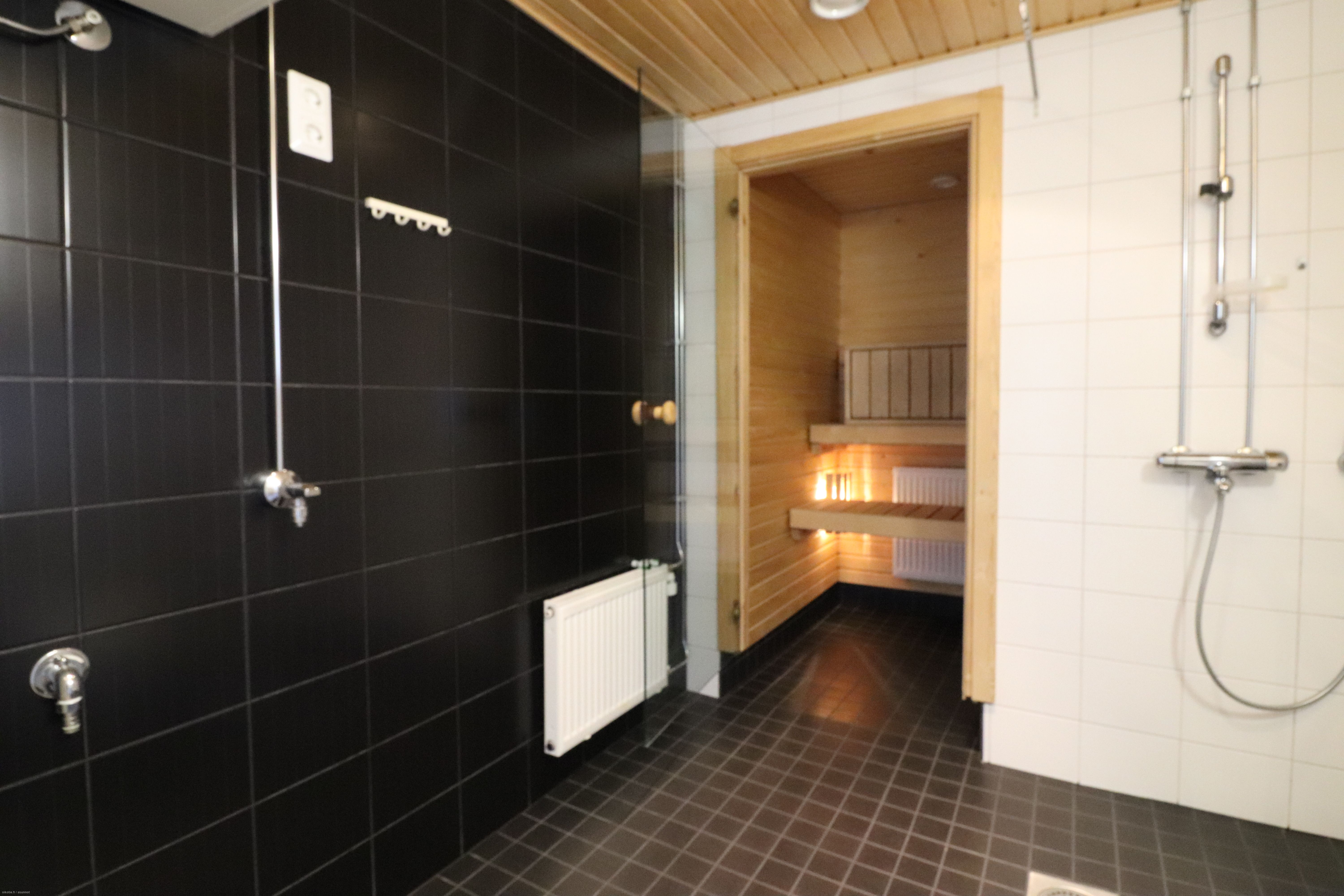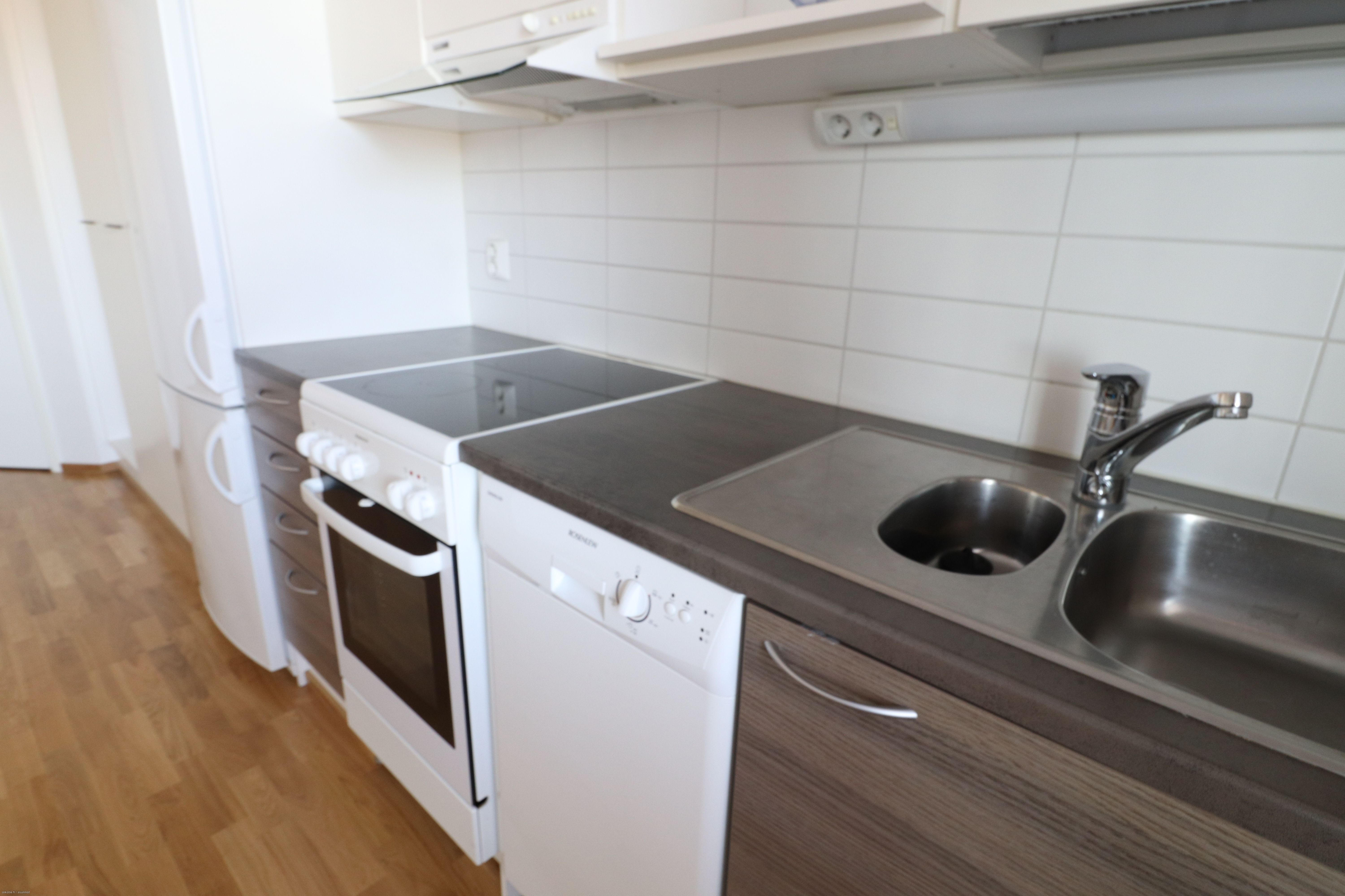 Asunnon lattiat on tammilautaparkettia ja seinät maalipinnoilla. Keittiössä laadukkaat Topi-kalusteet, jonka varustukseen kuuluu astianpesukone, keraaminen liesi ja jääkaappipakastin. Kylpyhuone on kaakeloitu kauttaaltaan ja sinne mahtuu hyvin oma pyykinpesukone. Omassa saunassa rentoudut päivien päätteeksi ja lasitettu parveke tuo yhden huoneen lisää aina keväästä alkaen. Tässä kodissa onkin siis kaikki mitä asumiselta tarvitset!