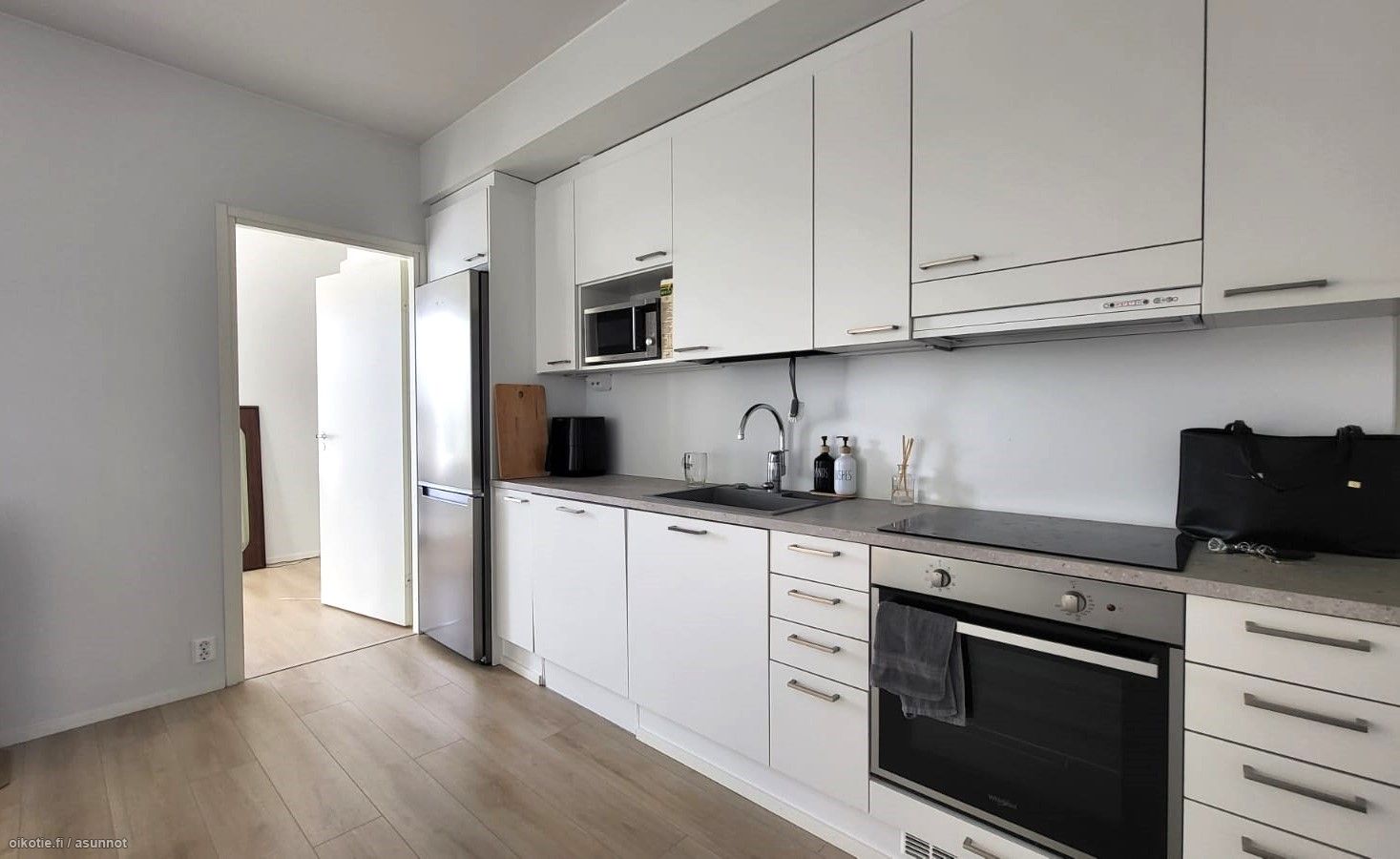 Vuokrattavana upea kolmannen (3/4) kerroksen kolmio omalla saunalla sekä parvekkeella!