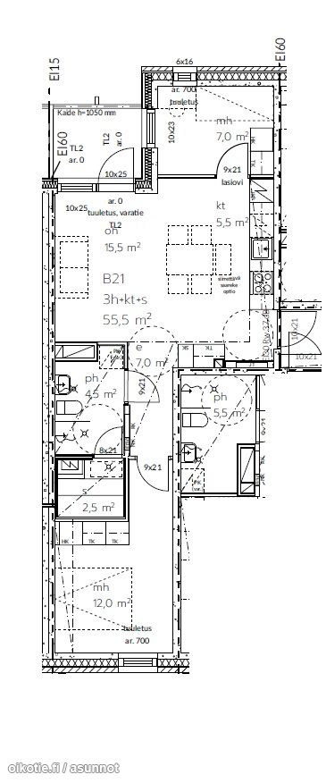 | Huoneiston kokoonpano | 3h,kt,kh,sa,parv,ap nro 3 |