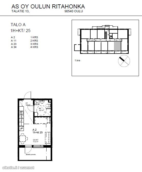 | Huoneiston kokoonpano | 1h,kt,kh,las.parv |