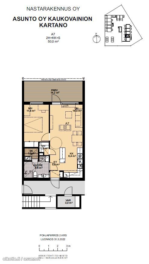 | Huoneiston kokoonpano | A7,2h,kt,kh,sa,l.parv,ap 3 |