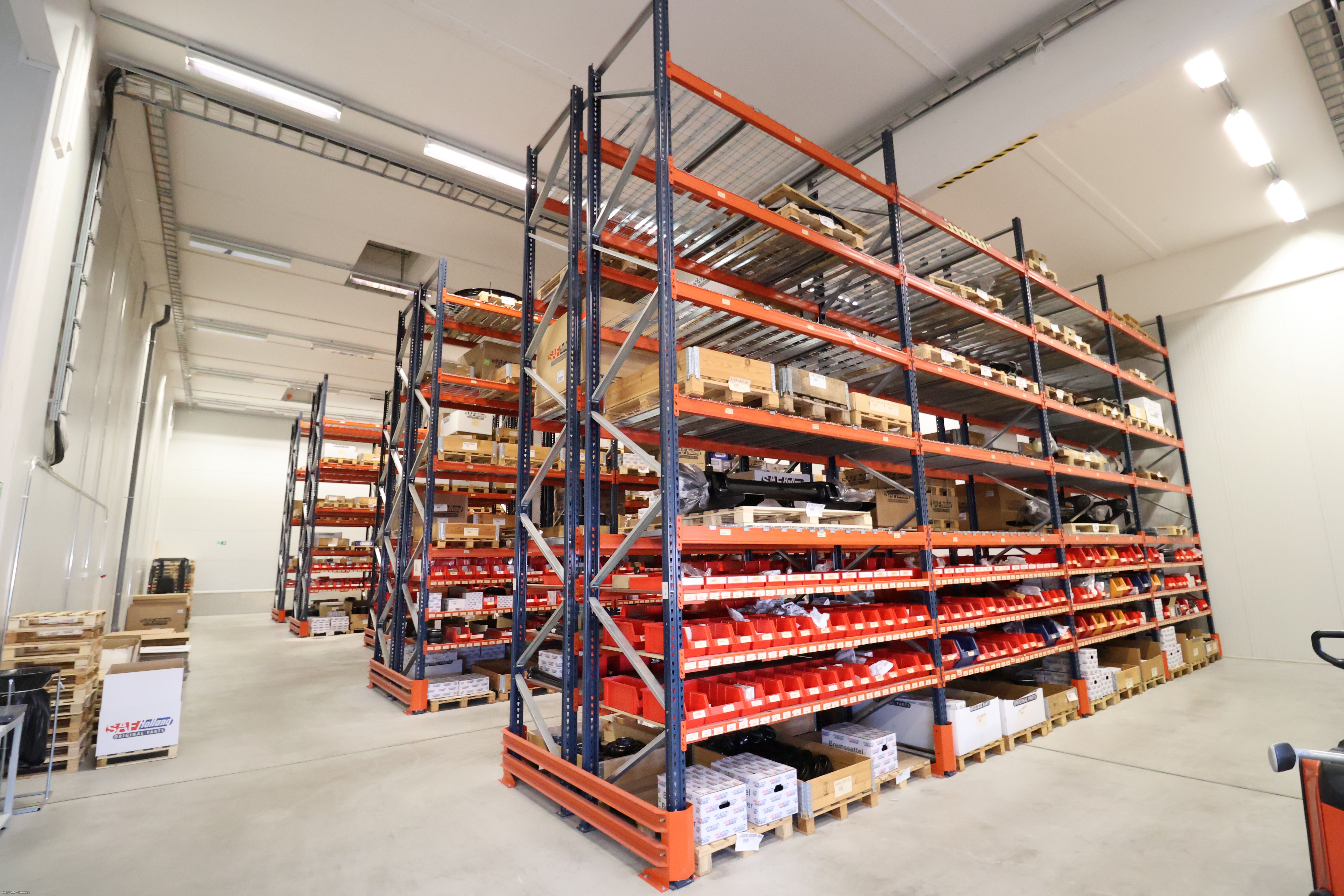 Osassa varastoa lava hyllyt valmiina.