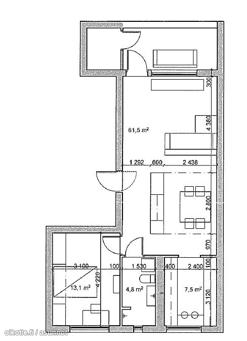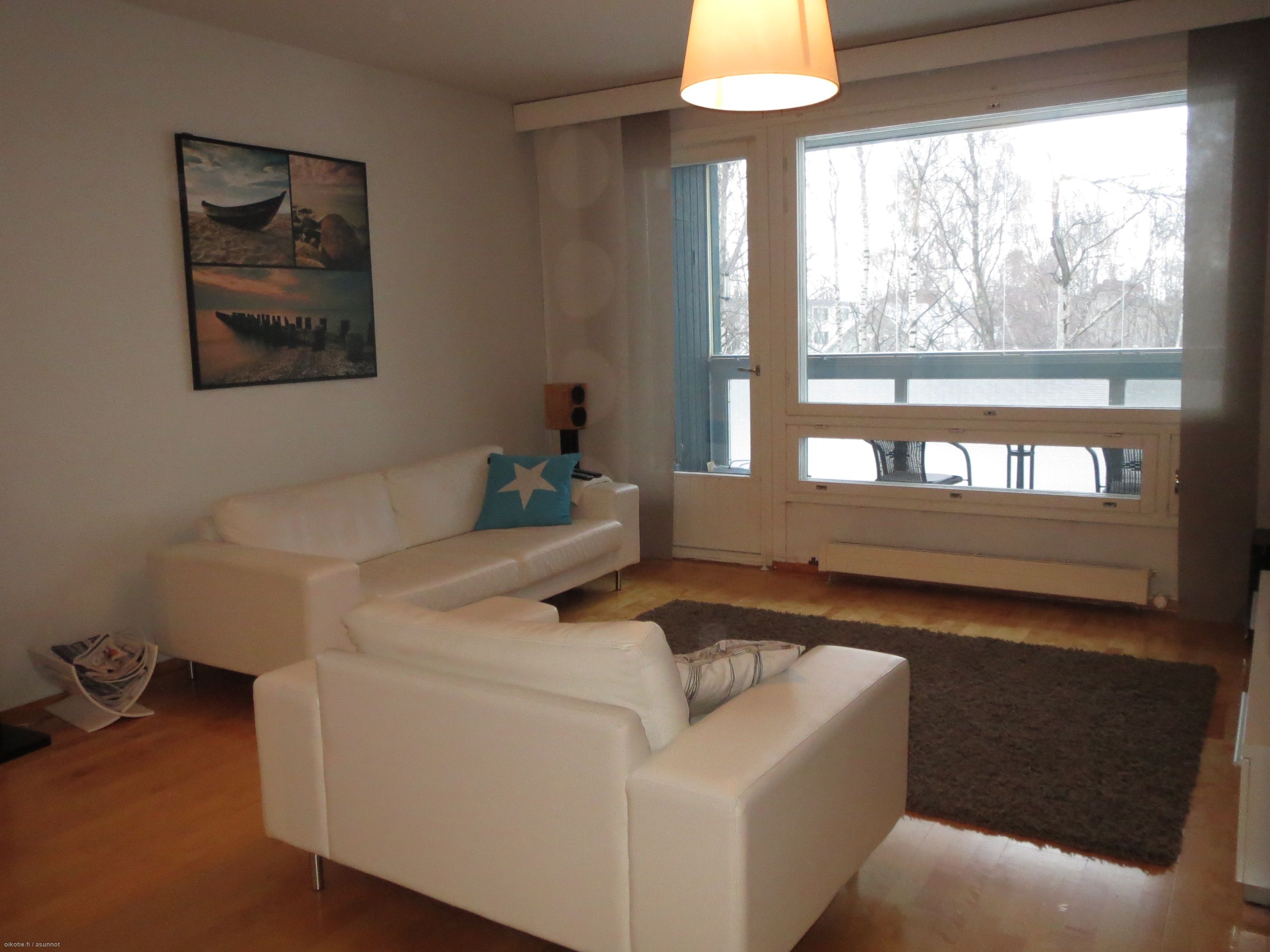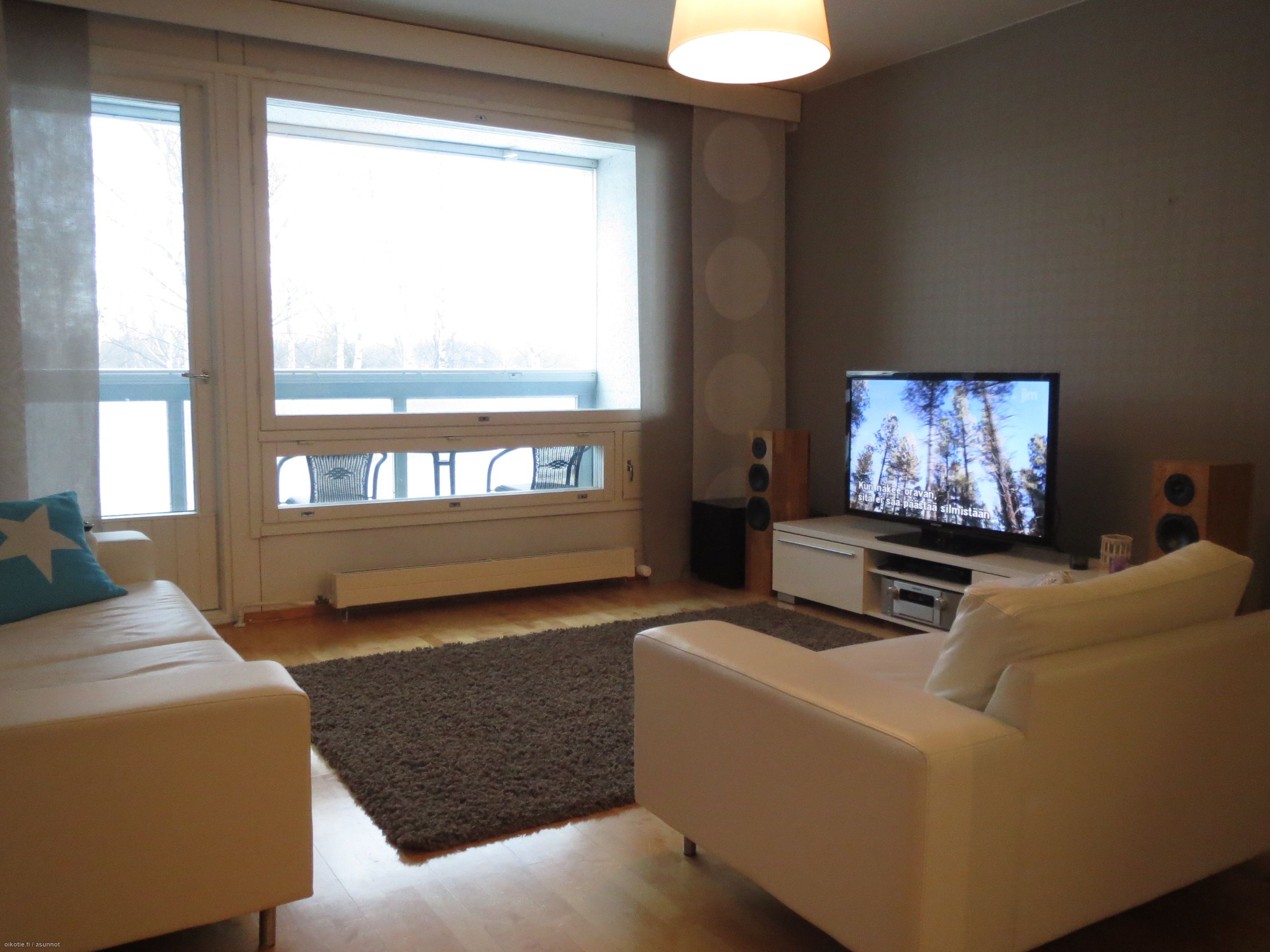 Tilaa riittää tässä 61,5m2 kokoisessa siistissä kodissa, jonka lattiat on parkettia ja seinät maalipinnoin/tehostetapetilla.