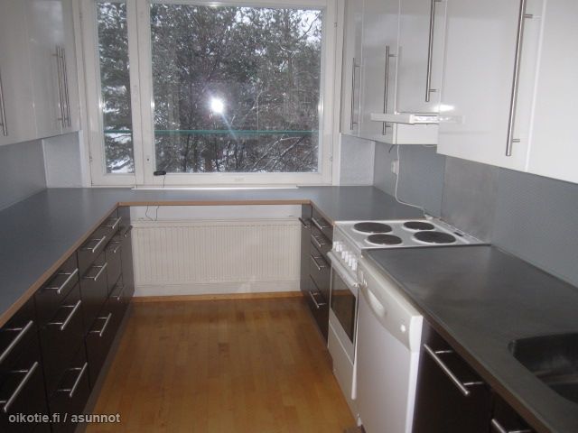 Joitakin vuosia sitten remontoidun keittiön varusteluun kuuluu jääkaappipakastin, liesi ja astianpesukone. Kylpyhuoneessa on paikka pyykinpesukoneelle. Taloyhtiössä on myös pesutupa.
