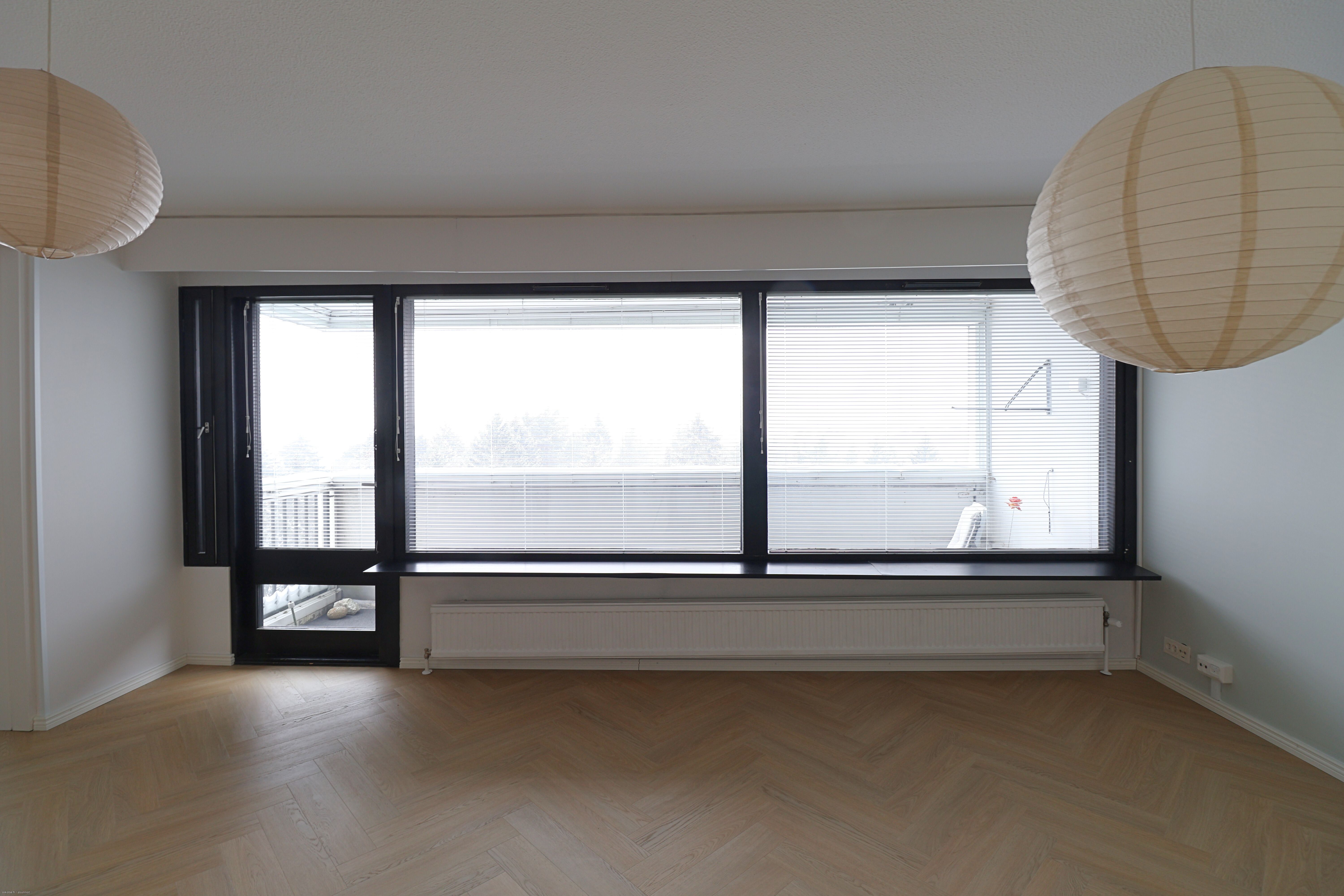 Tervetuloa valoisan ja tyylikkään kodin äärelle. Tämä ylimmän kerroksen kulmahuoneisto tarjoaa esteettömät, vehreät näkymät kaupungin ylle ja runsaasti luonnonvaloa suurten ikkunoiden ansiosta. Asunto laadukkailla materiaaleilla ja hyvällä maulla toteutettu kattava pintaremontti on valmistunut 5/2025.