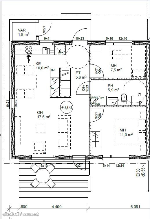 | Huoneiston kokoonpano | D26,3h,k,kh,ter,ap |